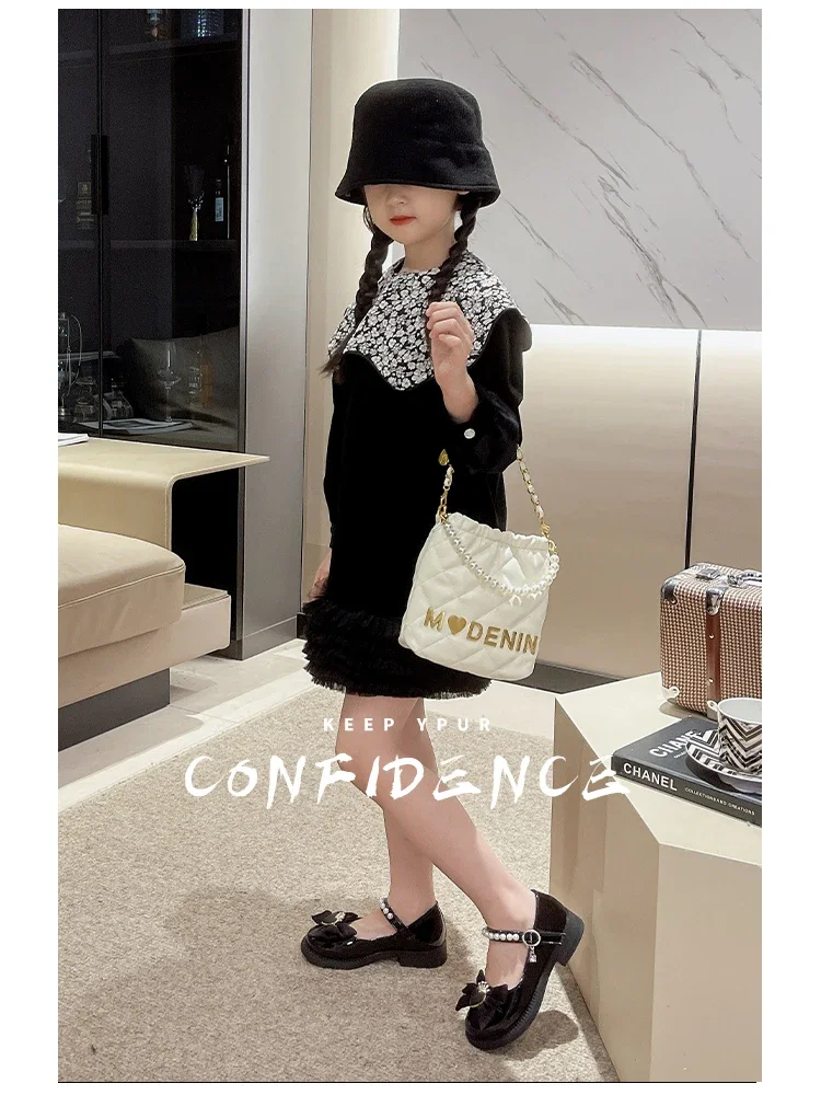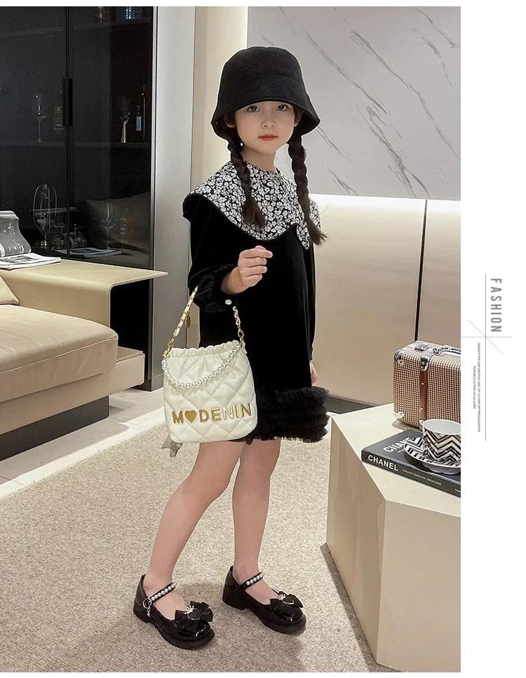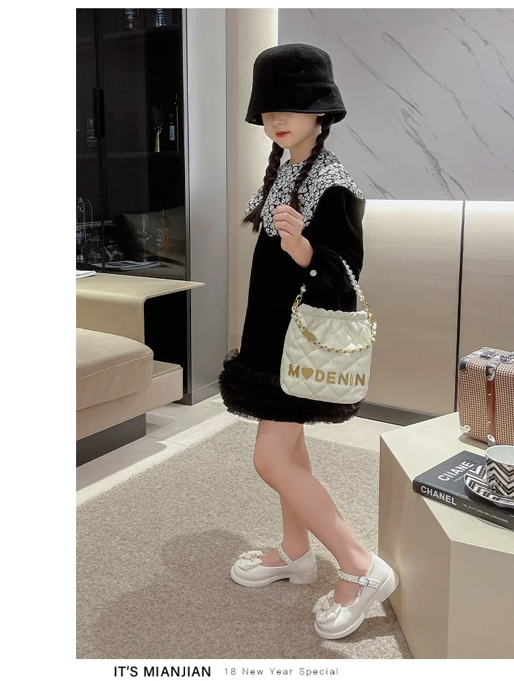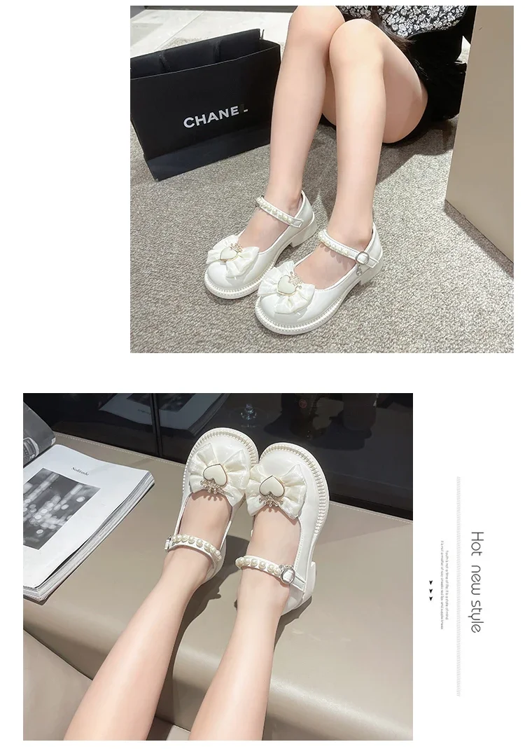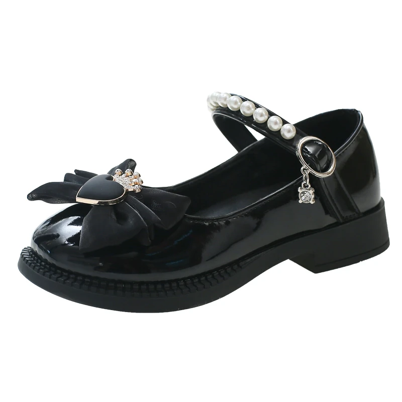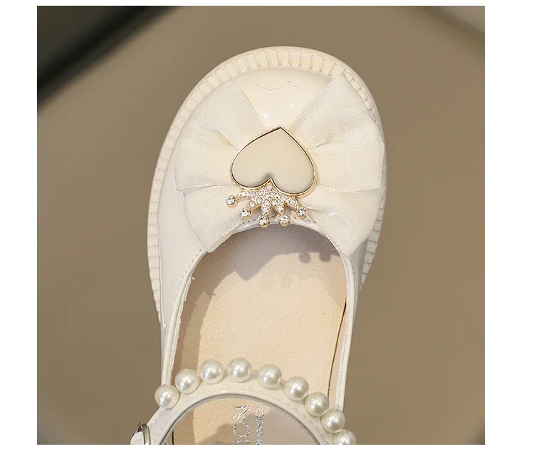 Girl Leather Shoes Mary Jane for Wedding Party Children Fashion Sweet Crown Bowknot Single Shoes Elegant Kid Princess Flat Shoes