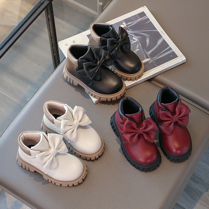 Girls Boots Bow Kids Fashion Buckle Cool Solid Color Toddler Girls Shoes Children Casual Boots Versatile Spring New Simple