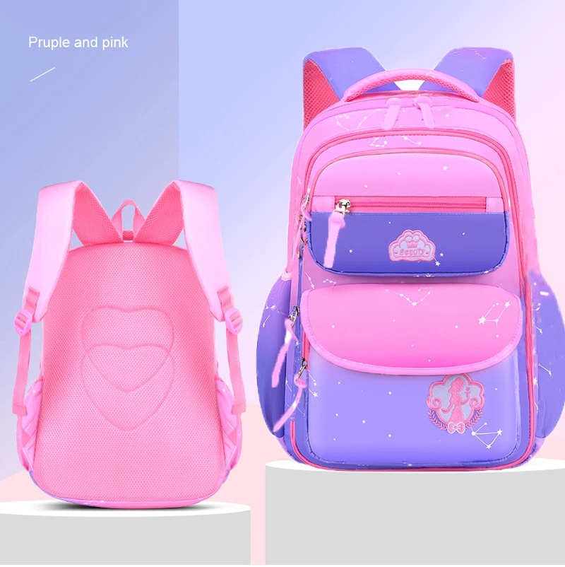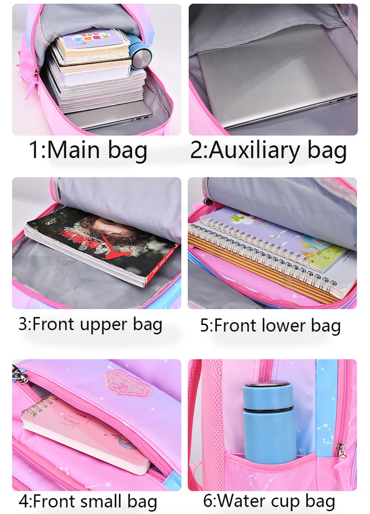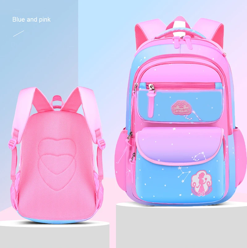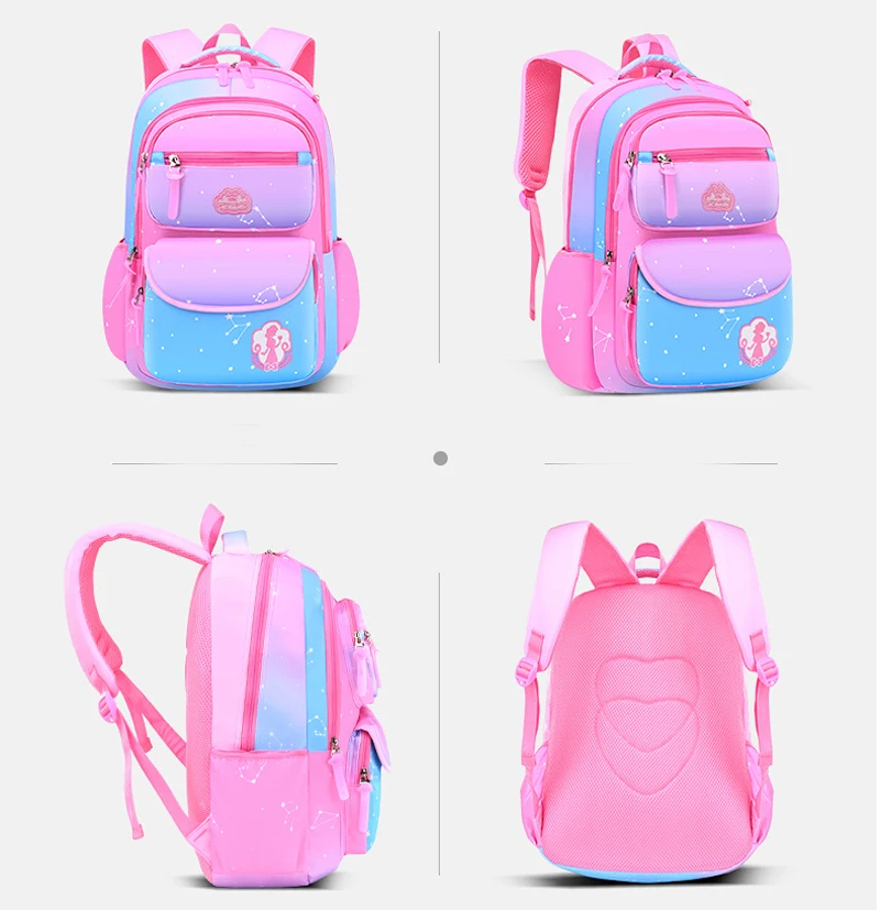 Girls' Macaron Color-Block Backpack – Premium Large-Capacity School Bag with Rainbow Zipper for Kids and Teens