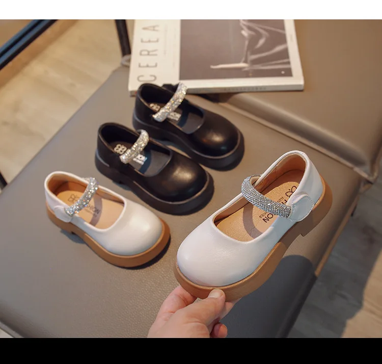 Girls' Princess Shoes Autumn New Children's Soft Sole Fashion Rhinestone Leather Shoes School Party Wedding Kids Shoes J122