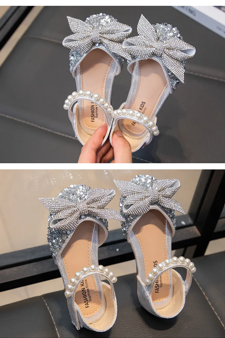 Girls' Shoes New Fashion Soft Princess Shoe for Girl Silver Dance Shoes for party size 21-36