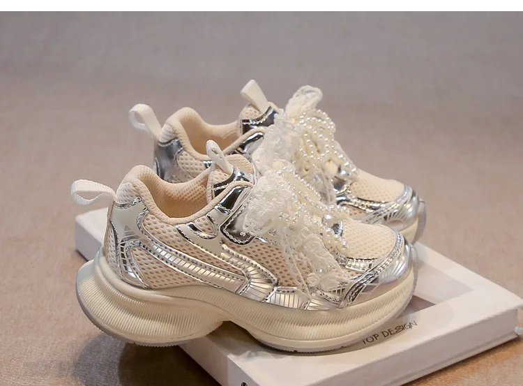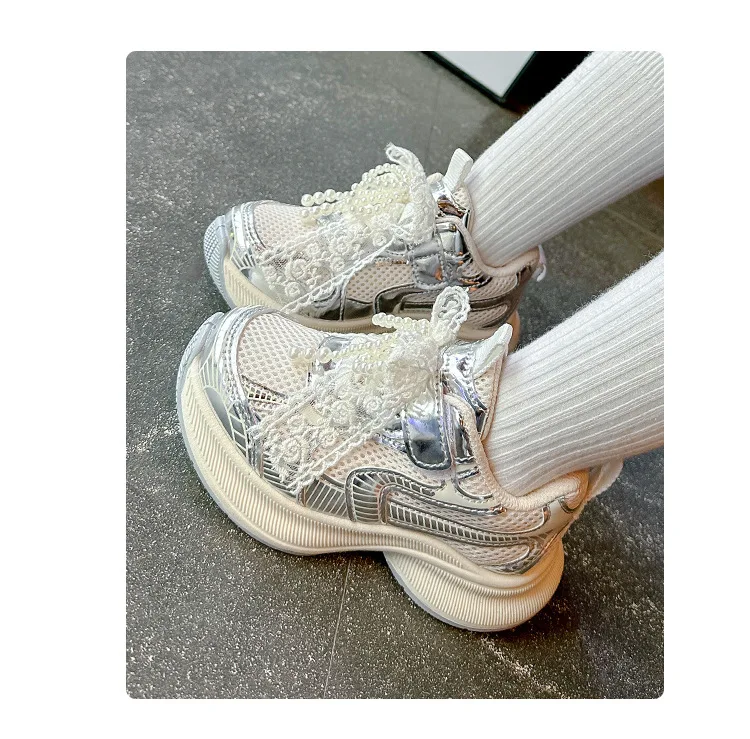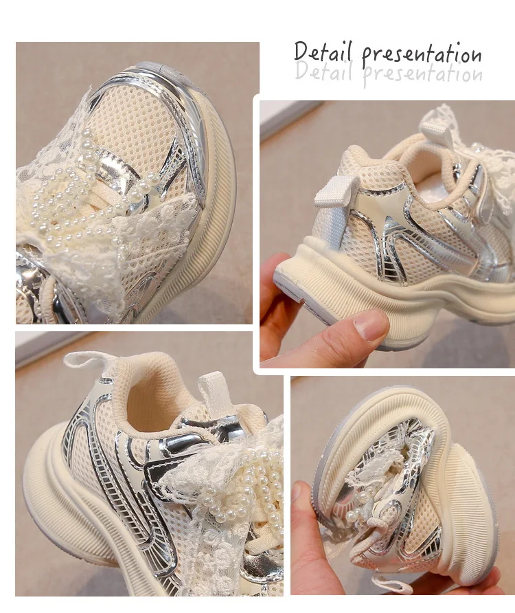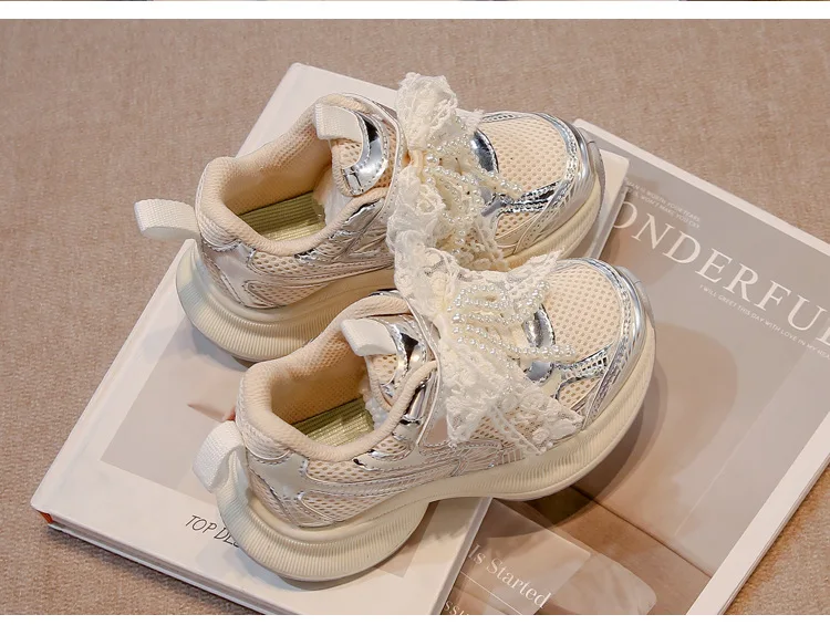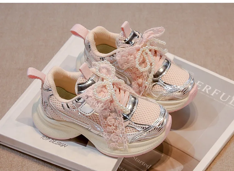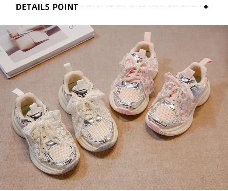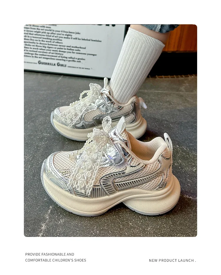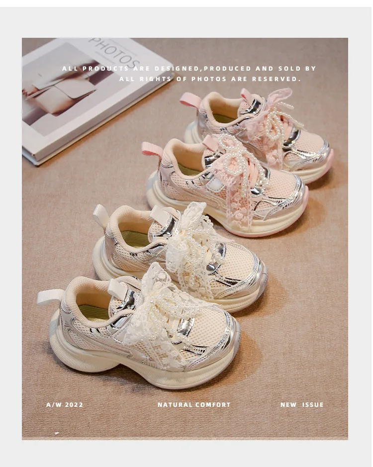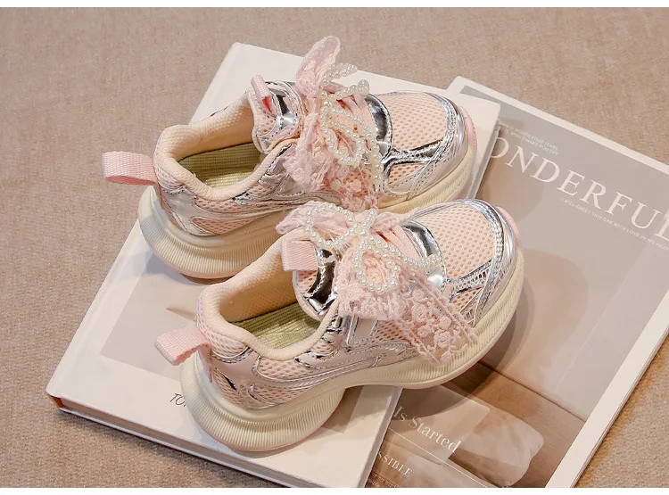 Girls Sneakers Princess Style Children Running Shoes Thick Soft Sole 2025 New Fashion Kids Sports Shoes Mesh Bows Sweet Cute