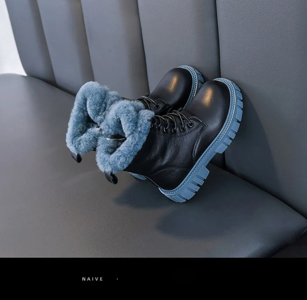 Girls' Winter Fashion Boots (Ages 6–18) – Korean Style, Thick Warm Faux Fur Snow Boots with Soft Soles and Anti-Slip Design
