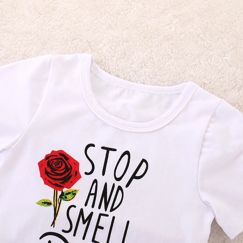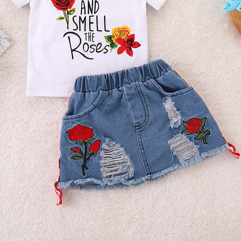 Humor Bear Girls Suit Summer Children's Clothes Suit Embroidery Letter Print Short sleeve+skirt Set Toddler Christmas Outfits