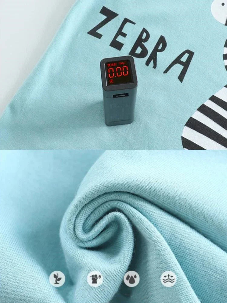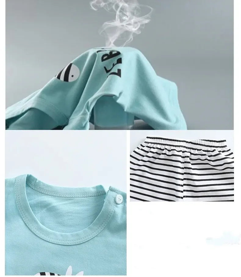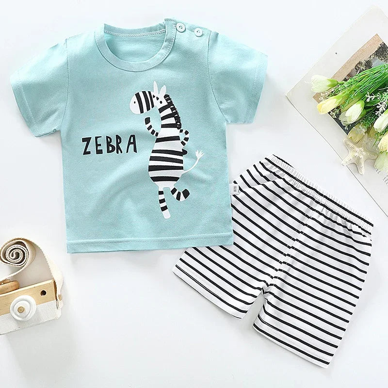 Kid Boy Summer Short Sleeves Tees+Stripe Shorts 2-piece Clothes Set Cartoon Zebra Print Soft Cotton Sports Casual Suit 1-6 Years