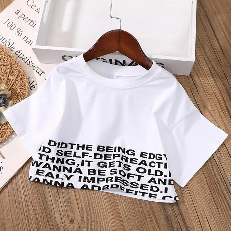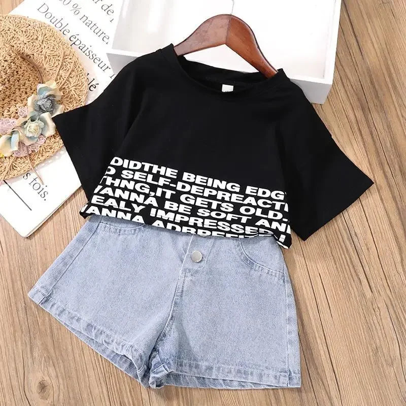 Kids Girls short Clothes Set Summer cotton Crop Tops T-shirt+Denim shorts 2pcs teens Girl Outfits Baby Girls Clothing 4 5 7 10 1