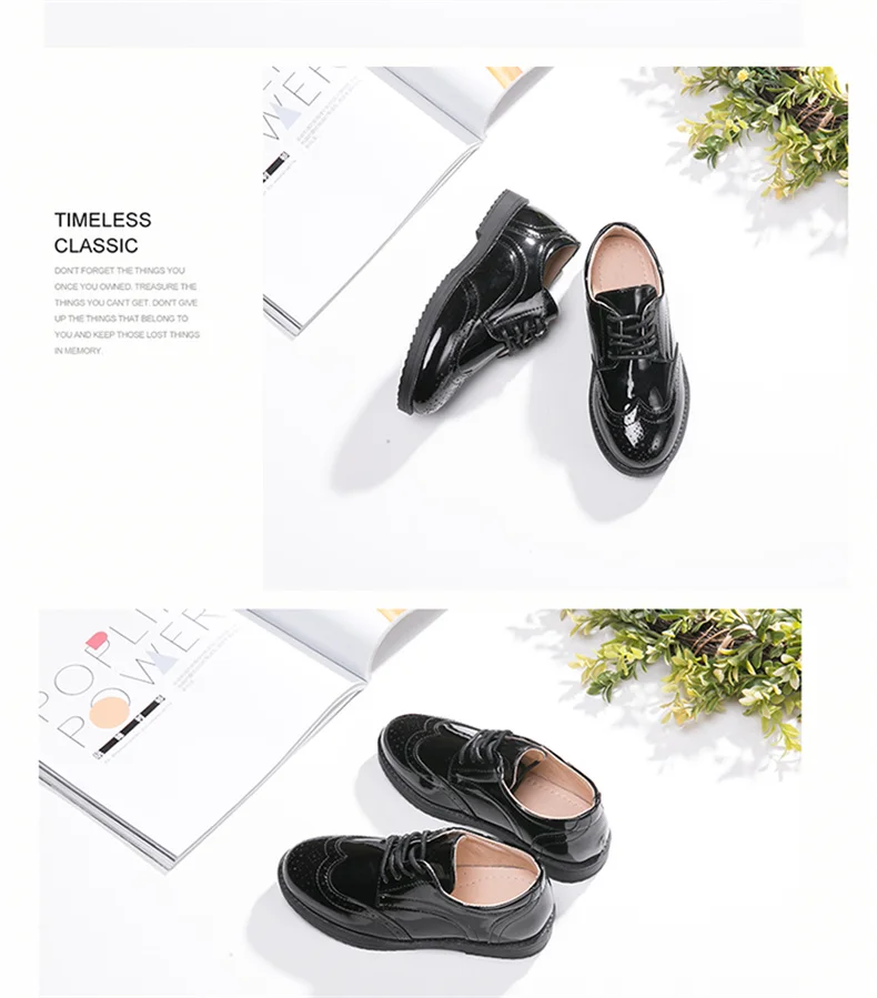 Kids Shoes For Boys Genuine Leather Shoes For Kids Wedding School Show Dress Flats Light Classic Black Children Loafer Moccasins