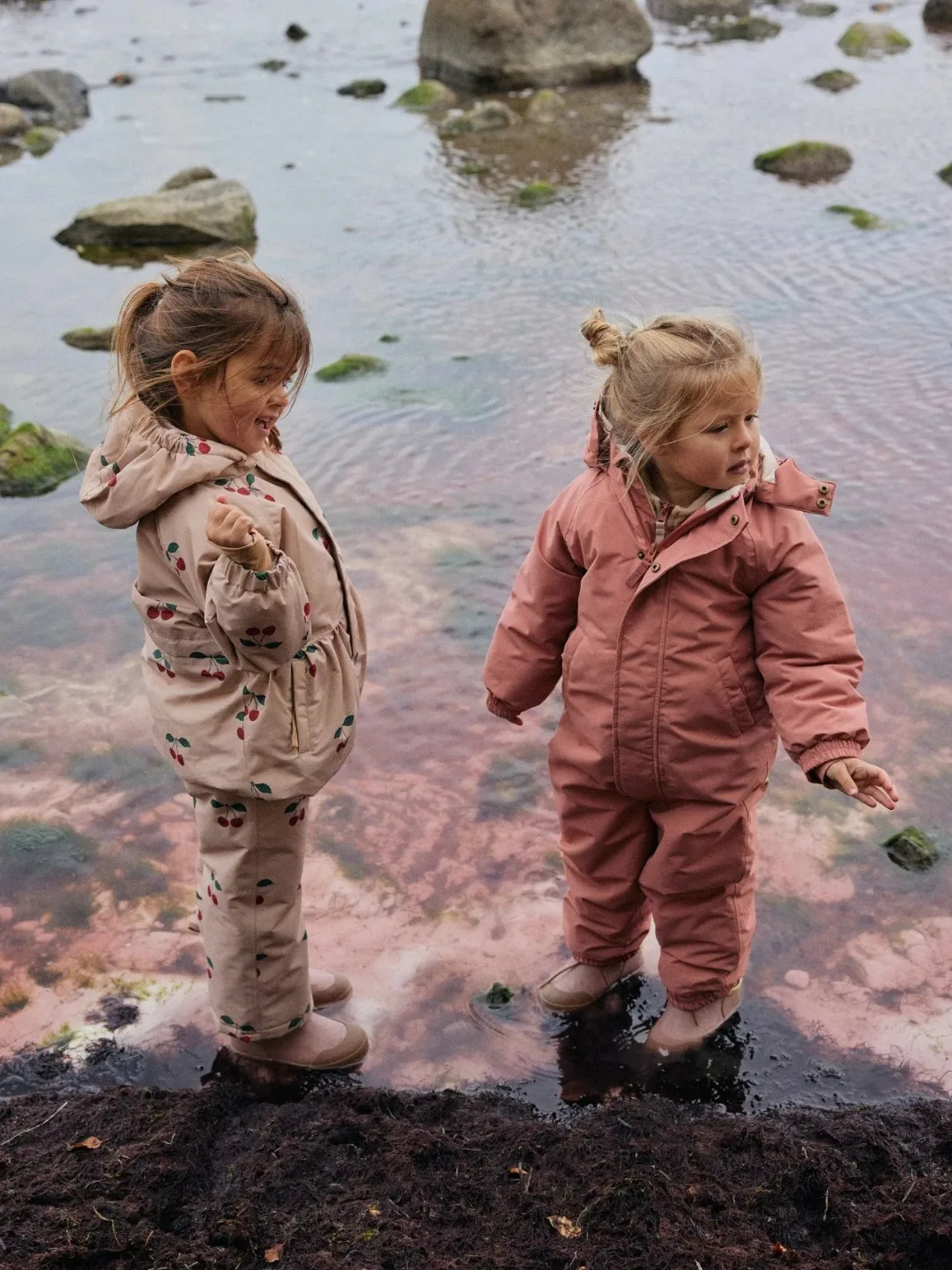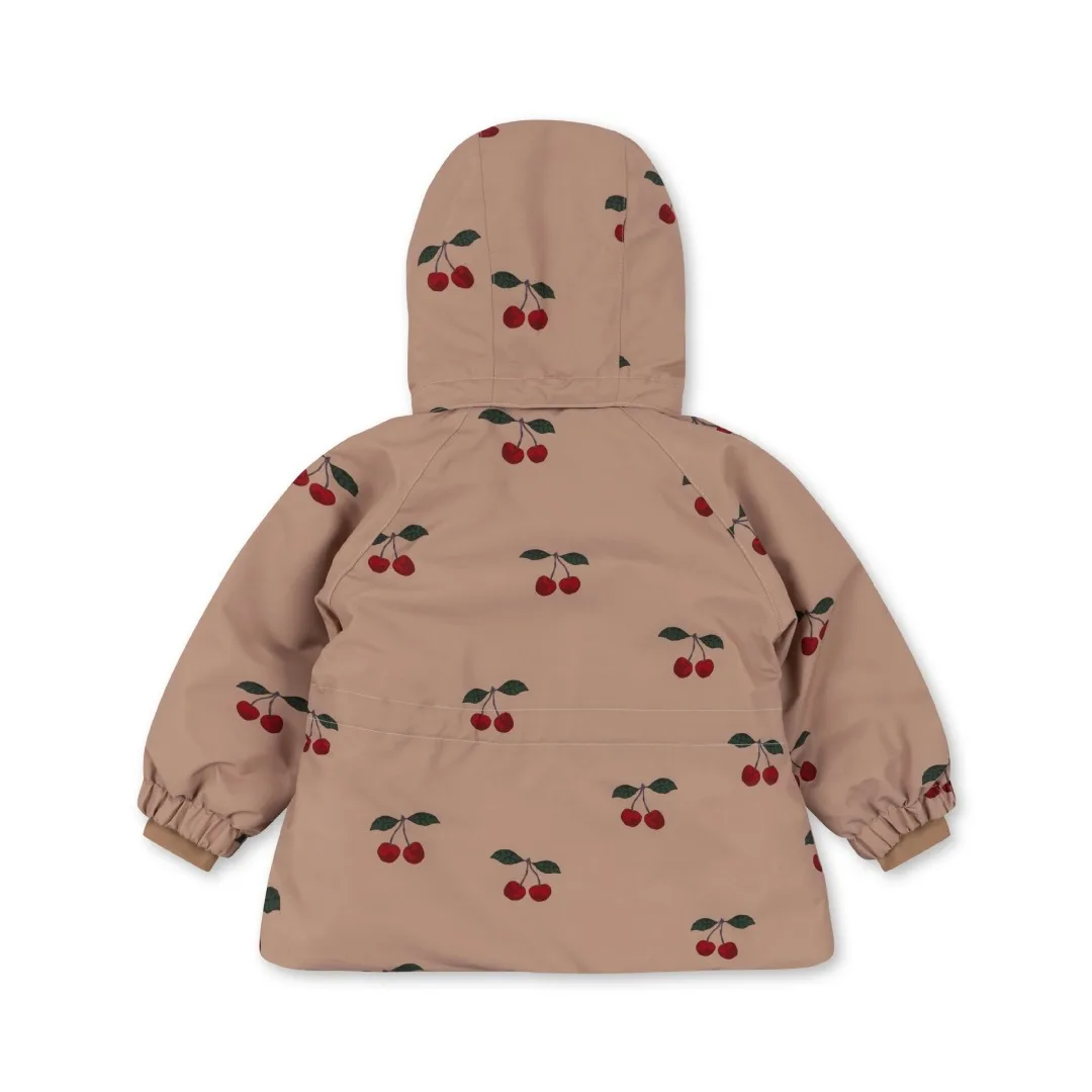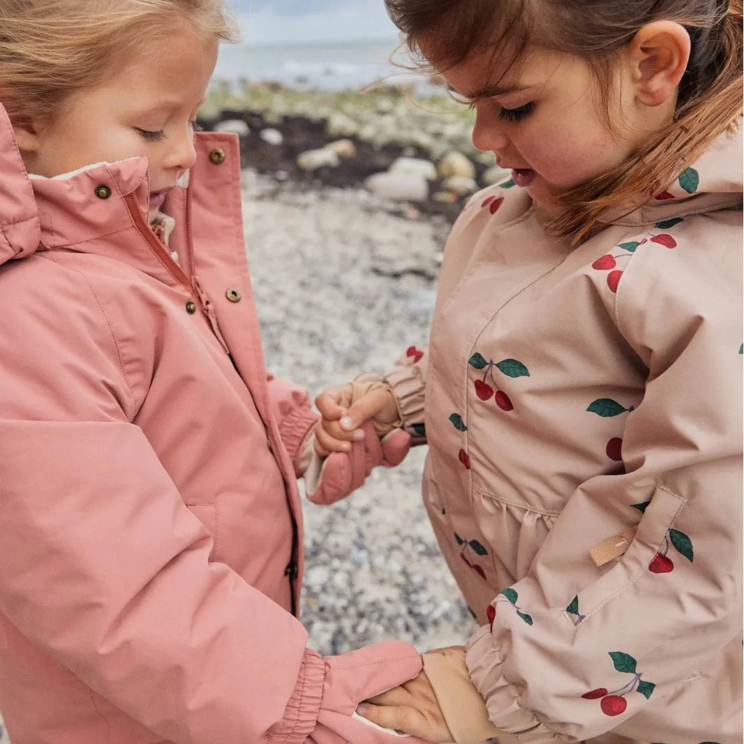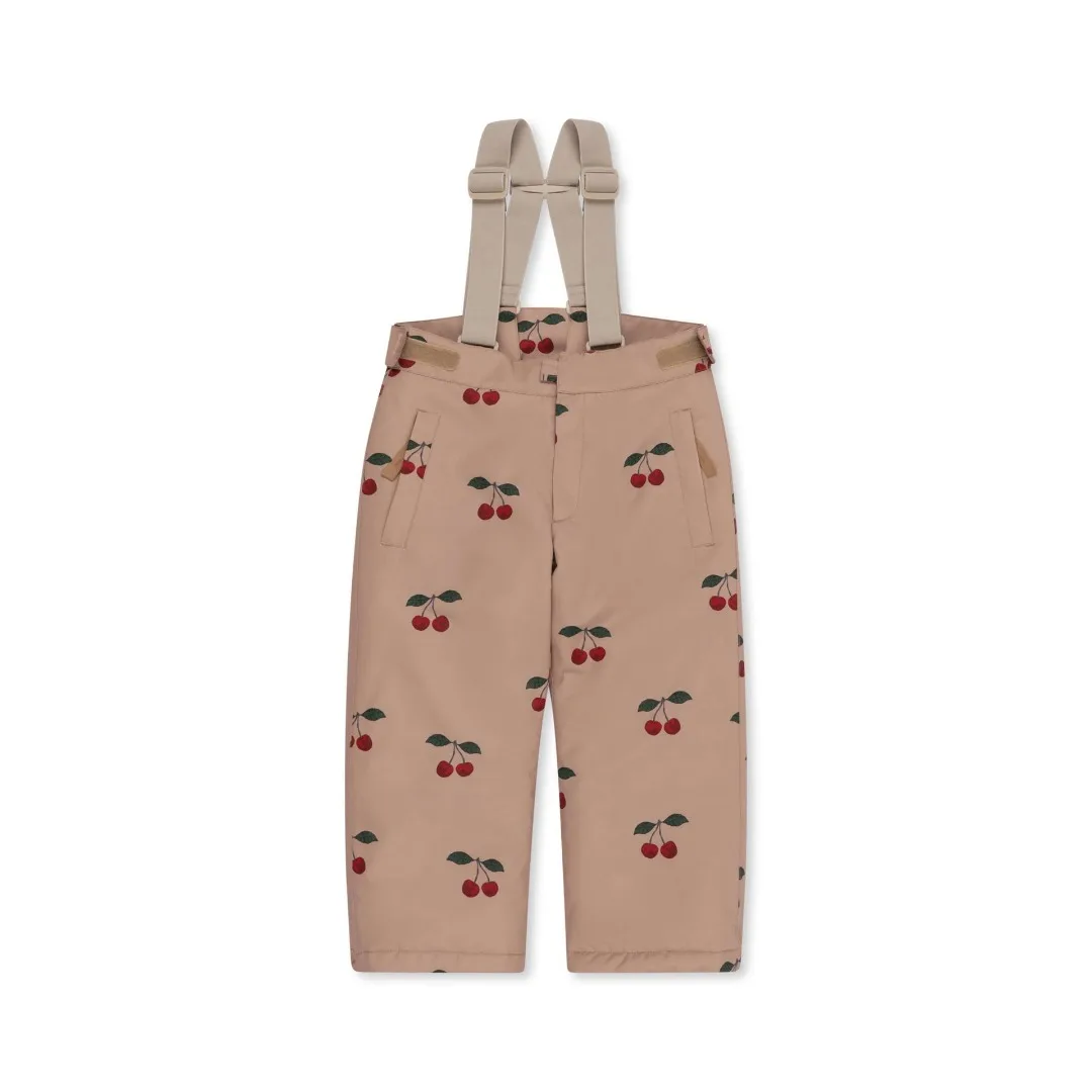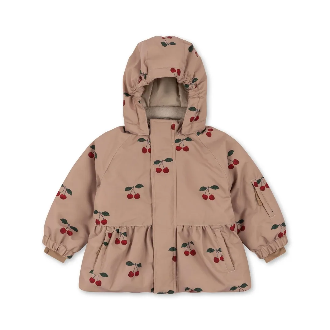 Konges Slojd 2025 Winter Baby Girls Cherry Hooded Ski Jackets Overalls Suits Sets Girls Waterproof Windproof Cold Resistant Coat