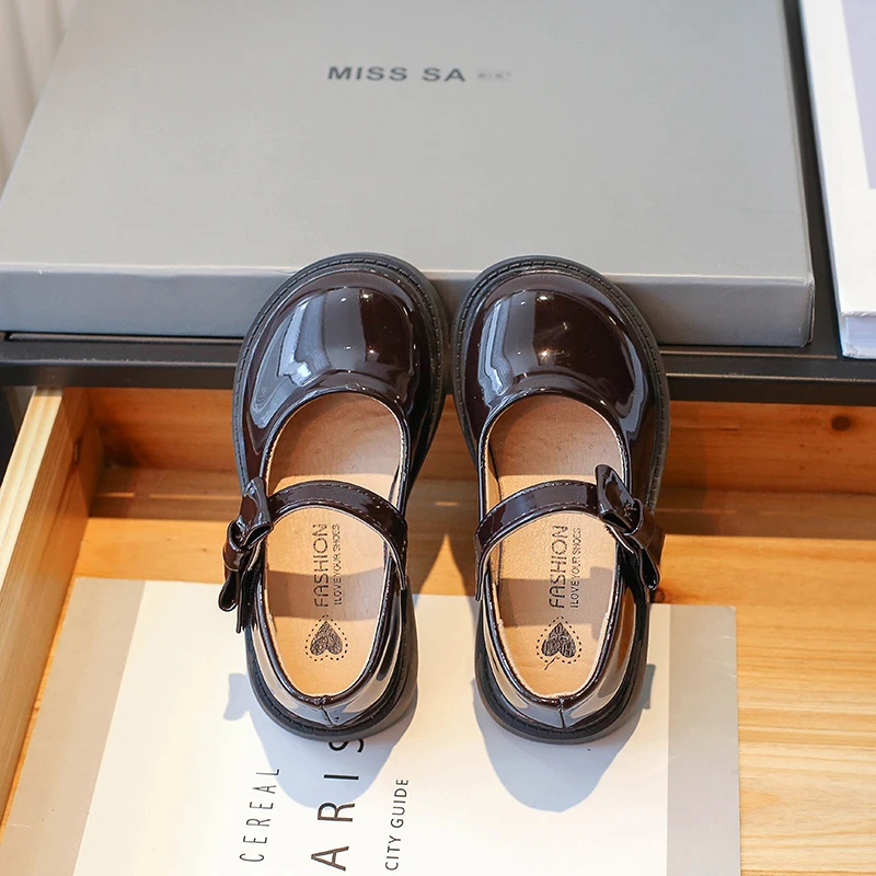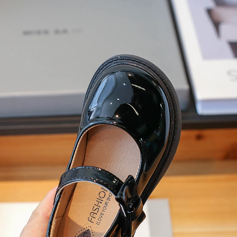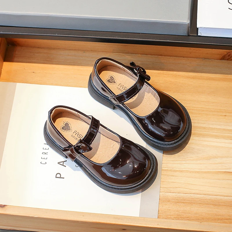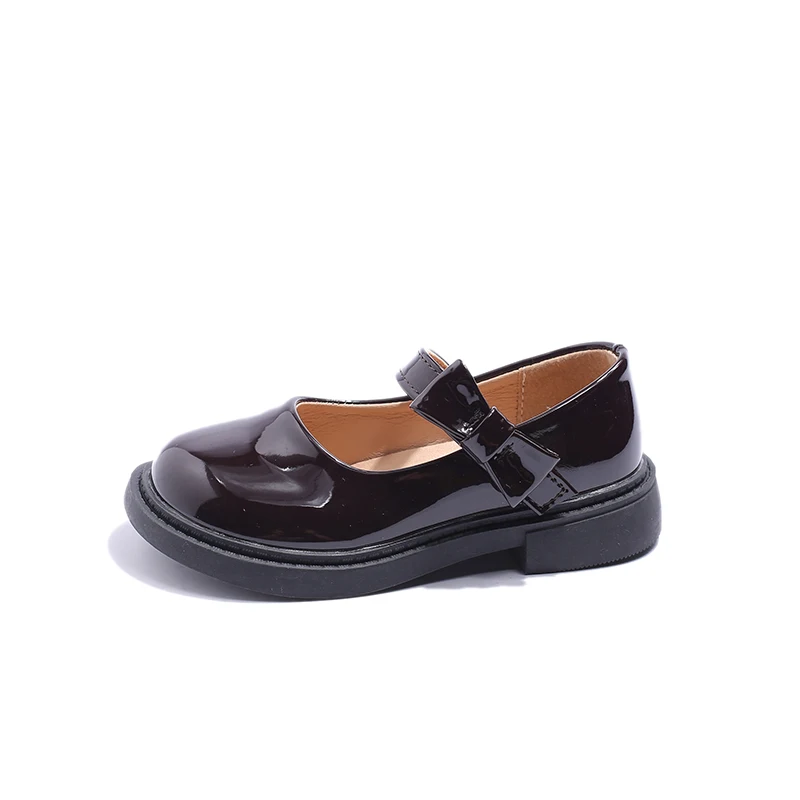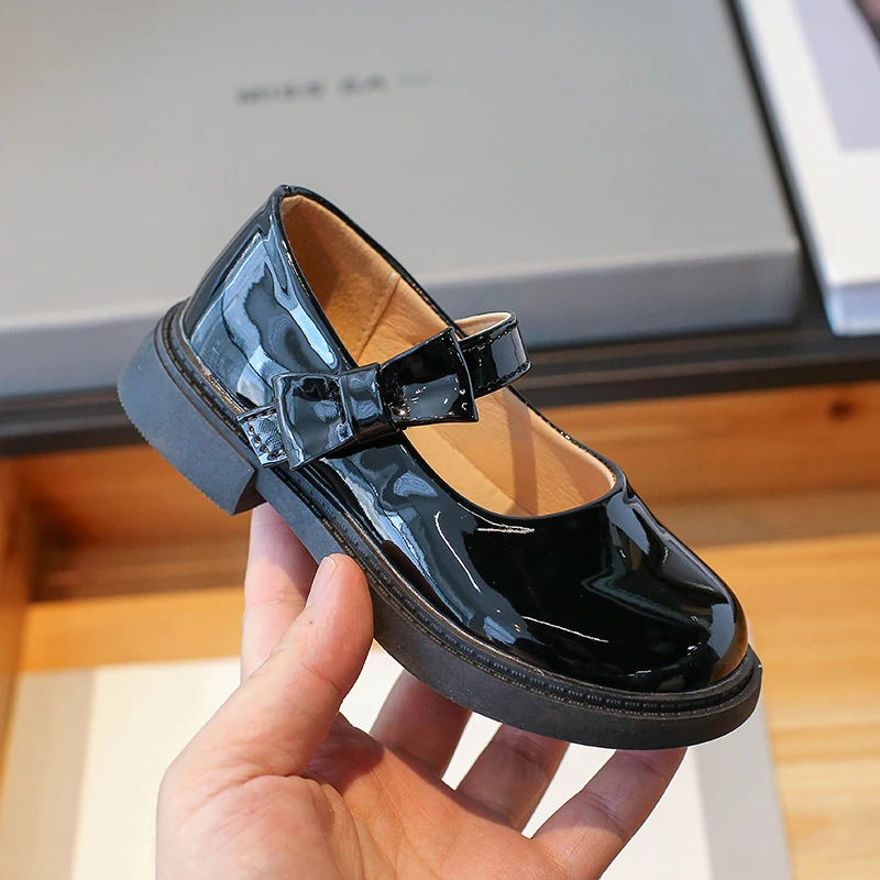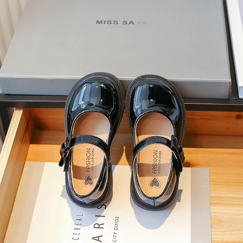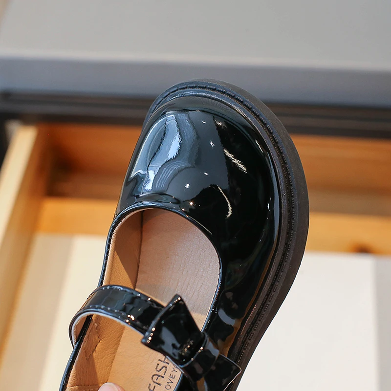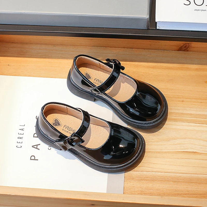 Little Girl Leather Shoes Black Kids School Uniform Mary Jane Shoes Sweet Side Bowknot Children Versatile Causal Shoes Fashion