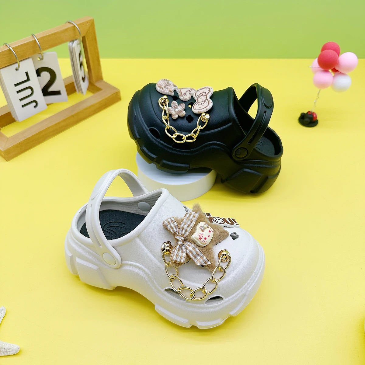 New Fashionable and Versatile Cartoon Chain Five-Pointed Star Kt Cat Hole Shoes Soft Sole Non-Slip Toe Sandals Boys and Girls Slippers 606