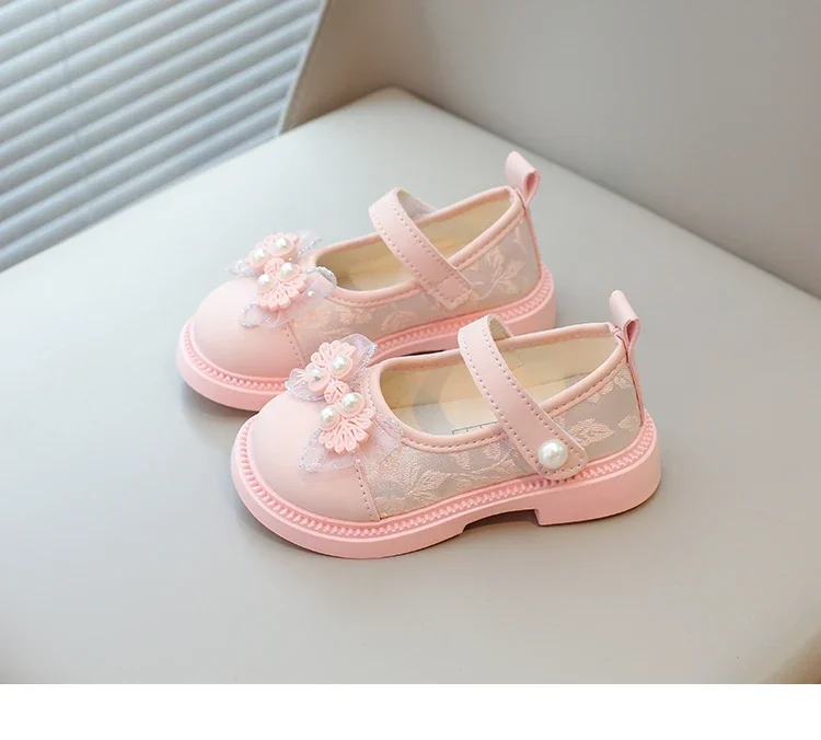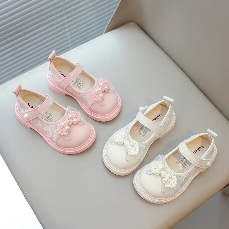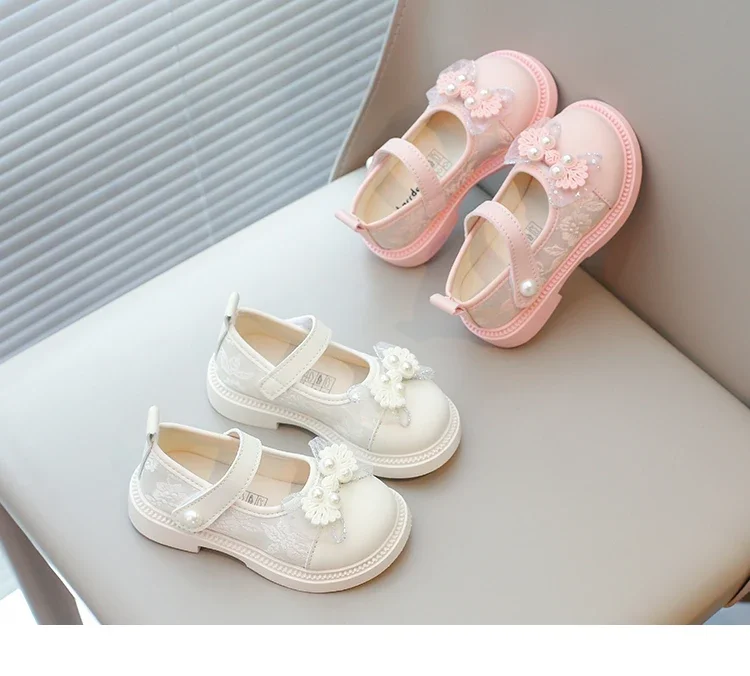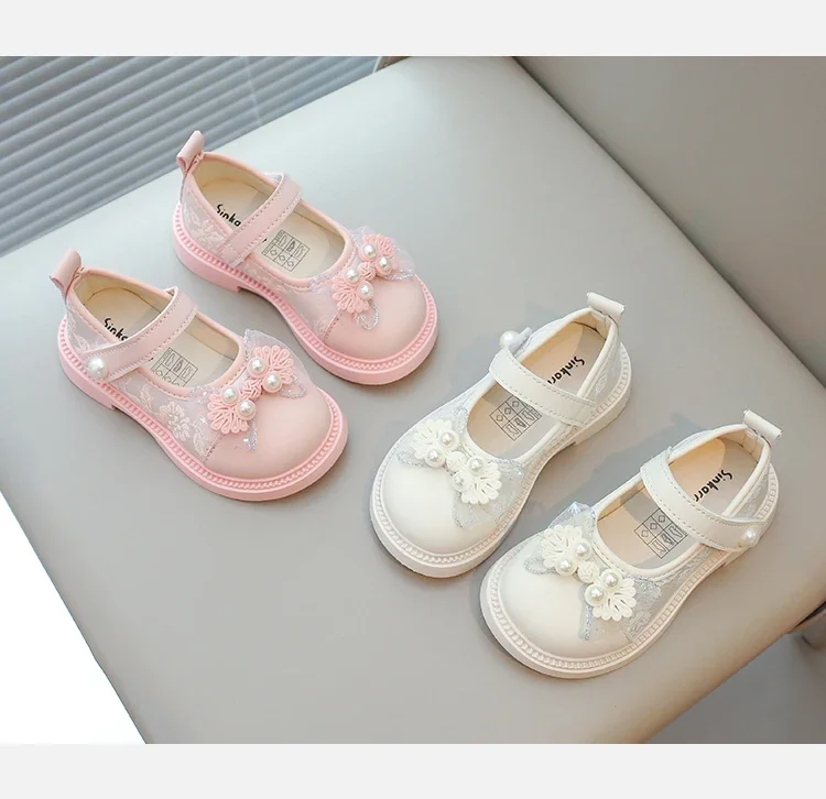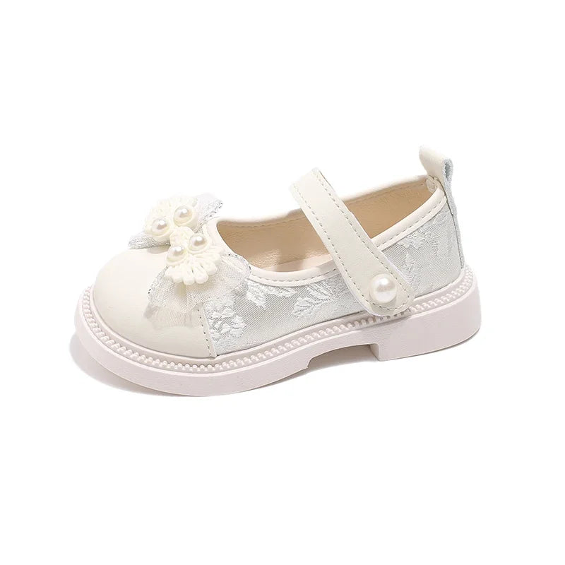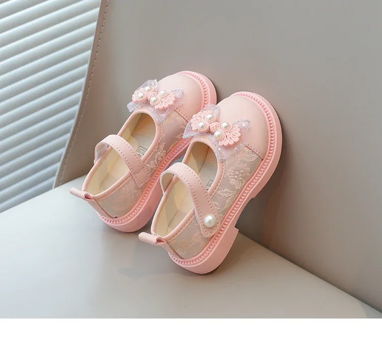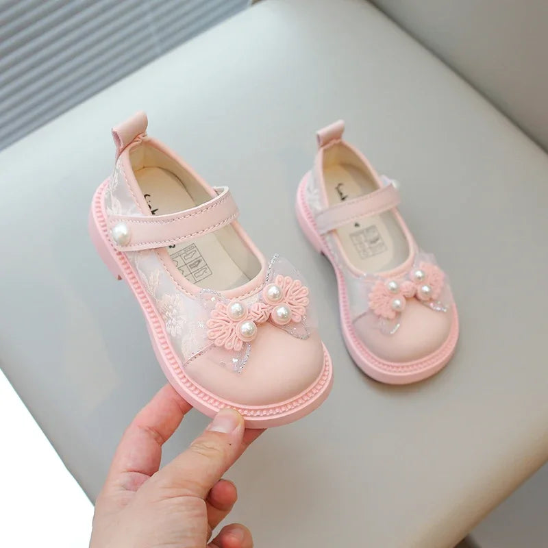 New Girls Leather Shoes for Traditional Holiday Ethnic Kids Casual Shoes with Embroidery Lace Bow-knot with Pearl Princess Sweet
