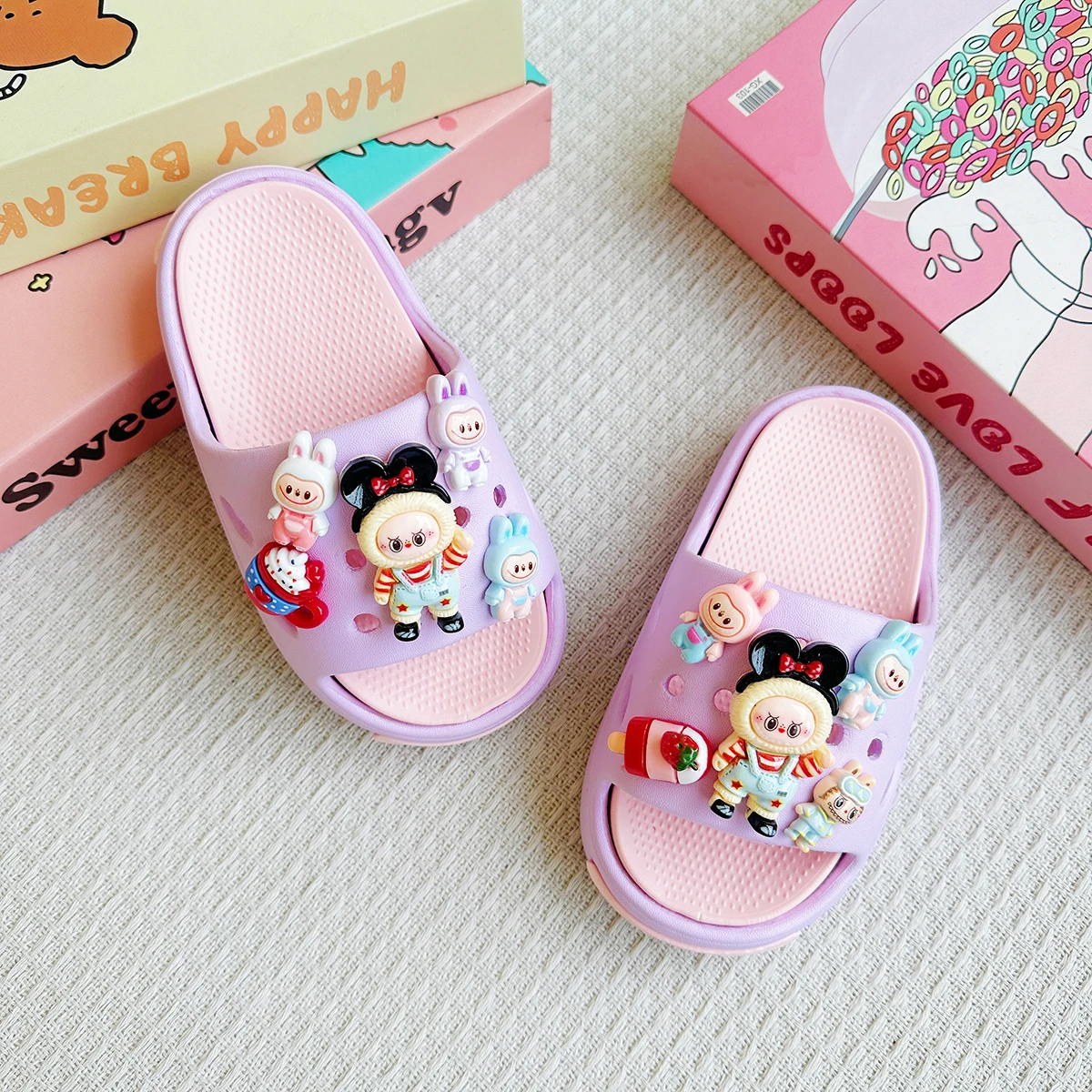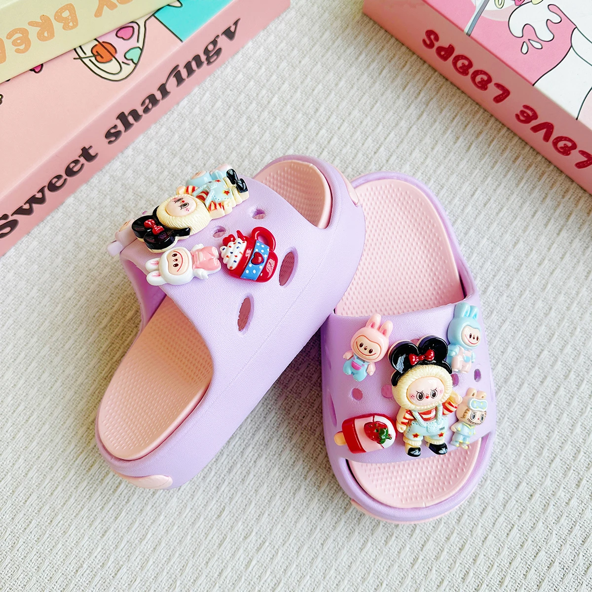 New Popular Cartoon Mickey Labubu Versatile Girls Eva Slippers Fashionable Double Soft-Soled Non-Slip Sandals 831