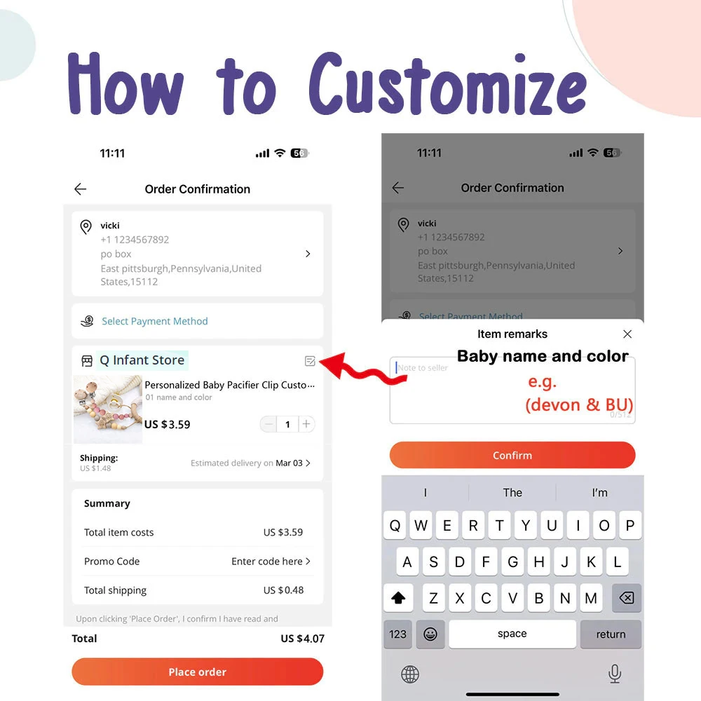 Option 1 : If there is no comment on the name and font, a pacifier chain without a name will be sent directly.