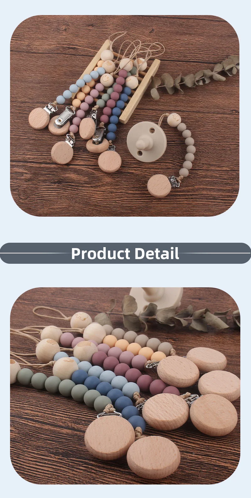 1: wooden beads pacifiers