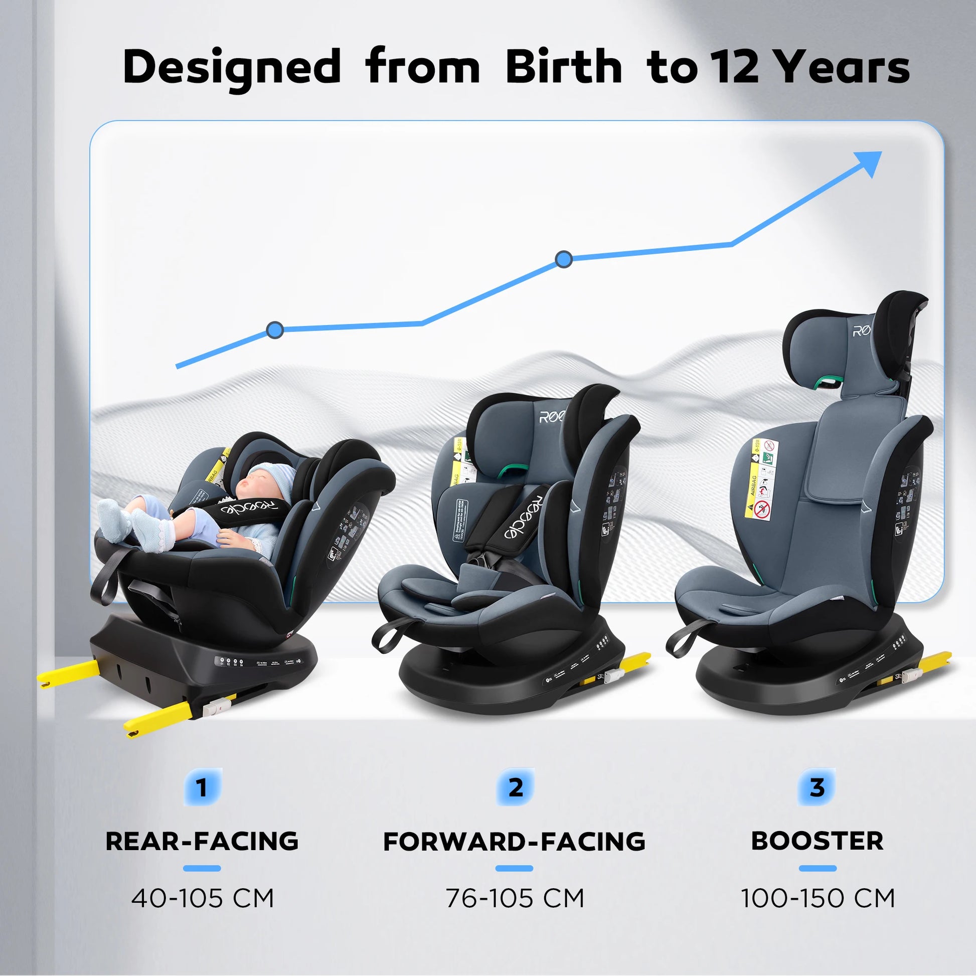 Reecle 360 Child Baby Car Seat with ISOFIX, 40-150cm (Group 0+ 1/2/3, 0-36 kg), Approx. 0-12 Years