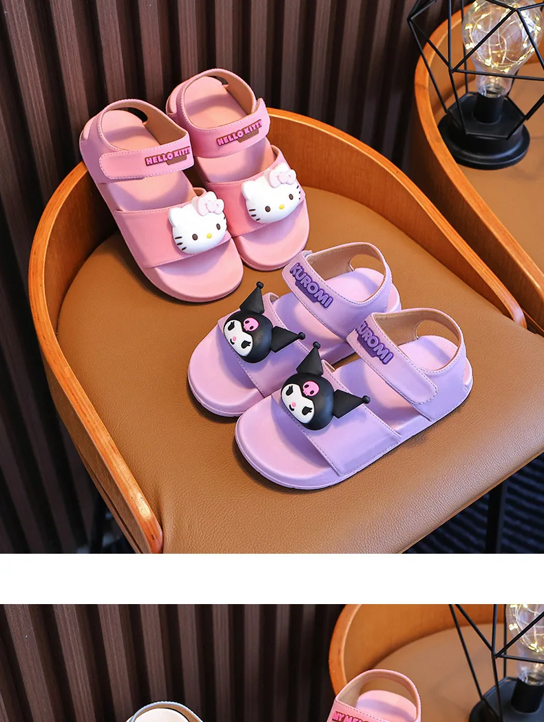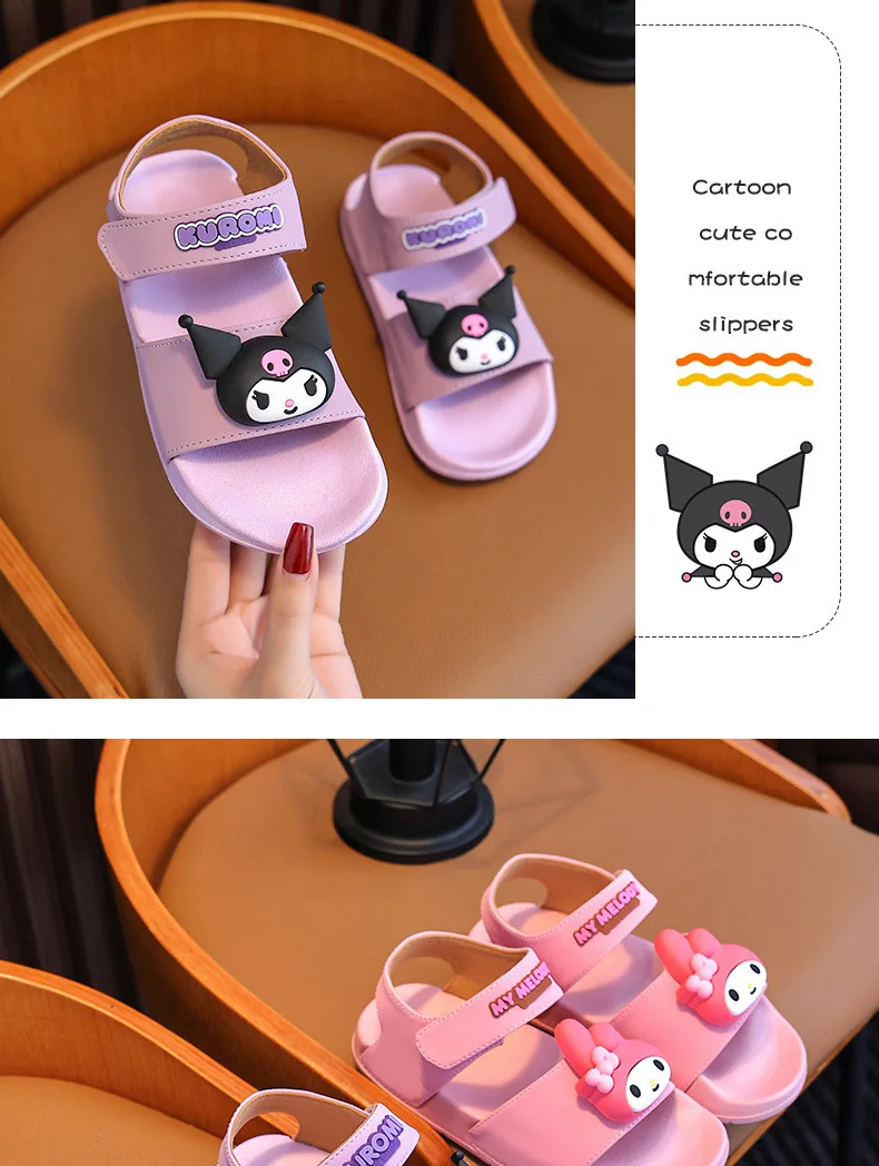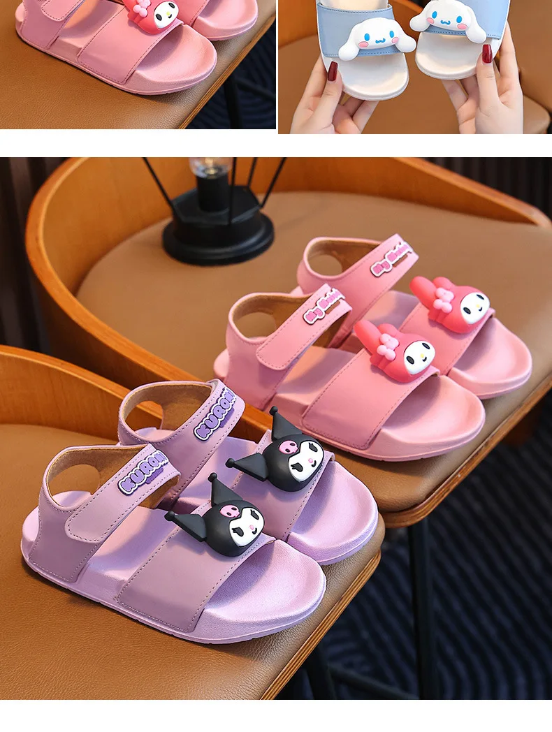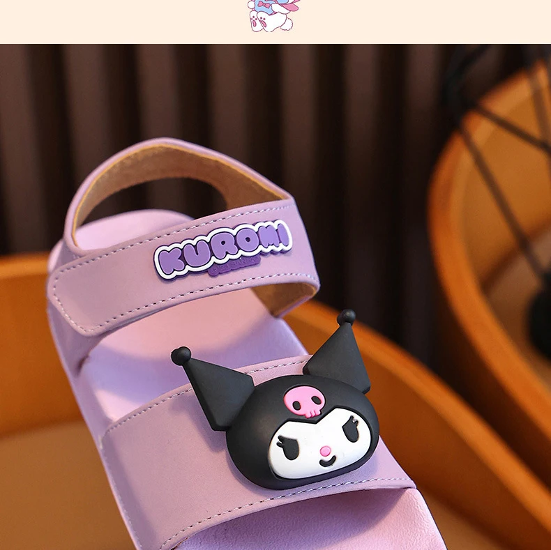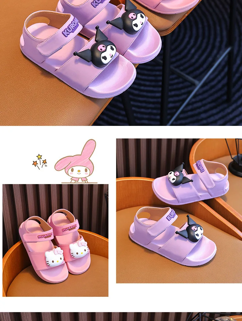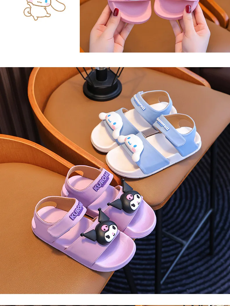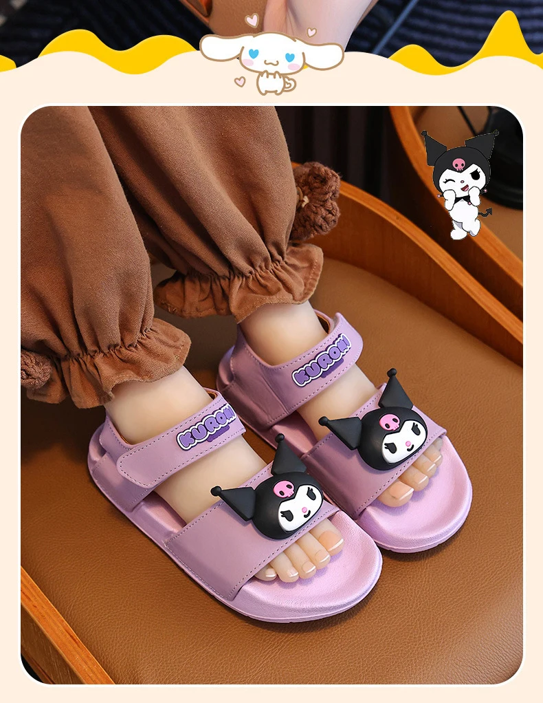 Sanrio KIds’ Sandals Lightweight Outdoor Anti-Slip Sandals For Boys Girls Beach Kuromi Wear-Resistant EVA Sole With Hook & Loop