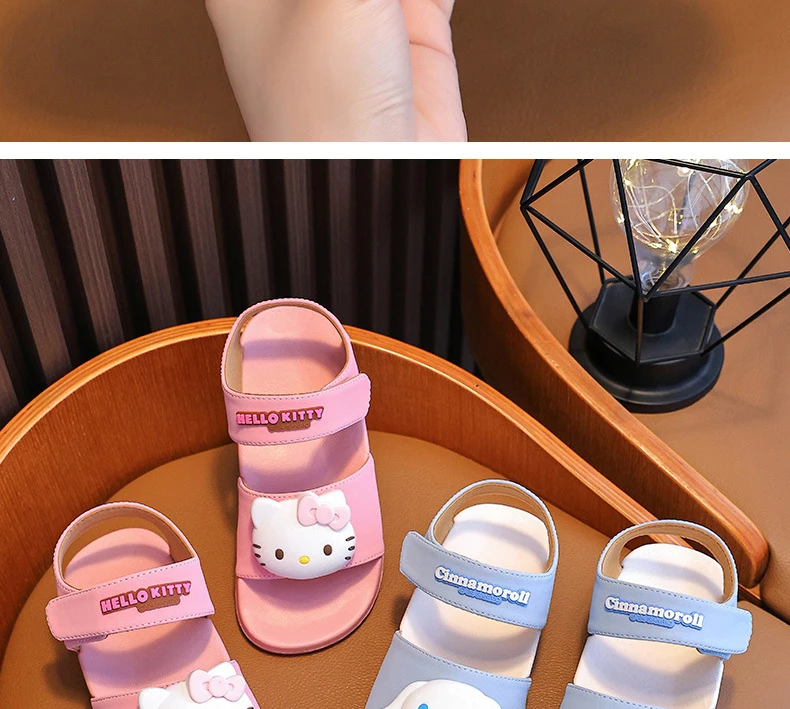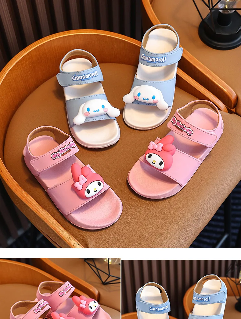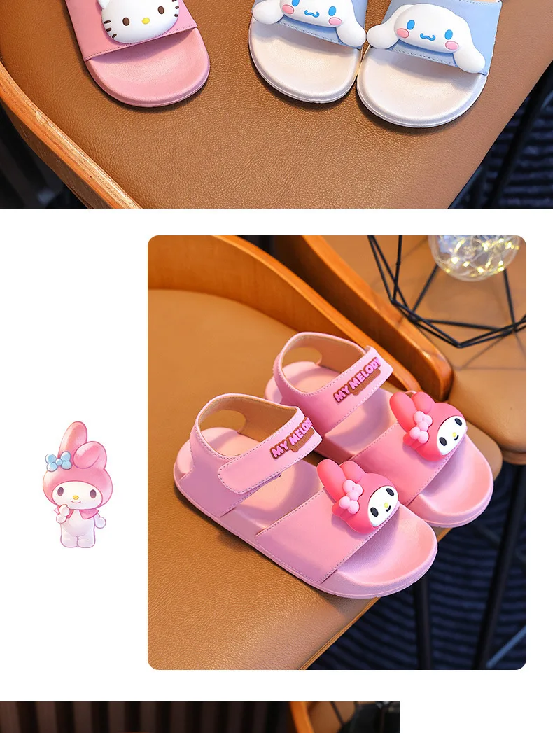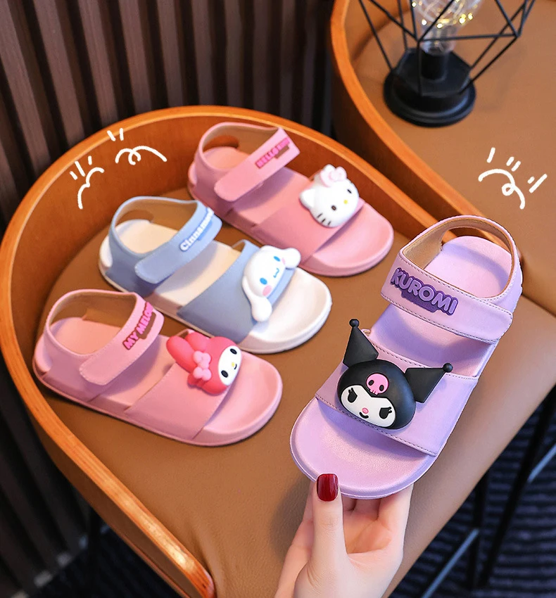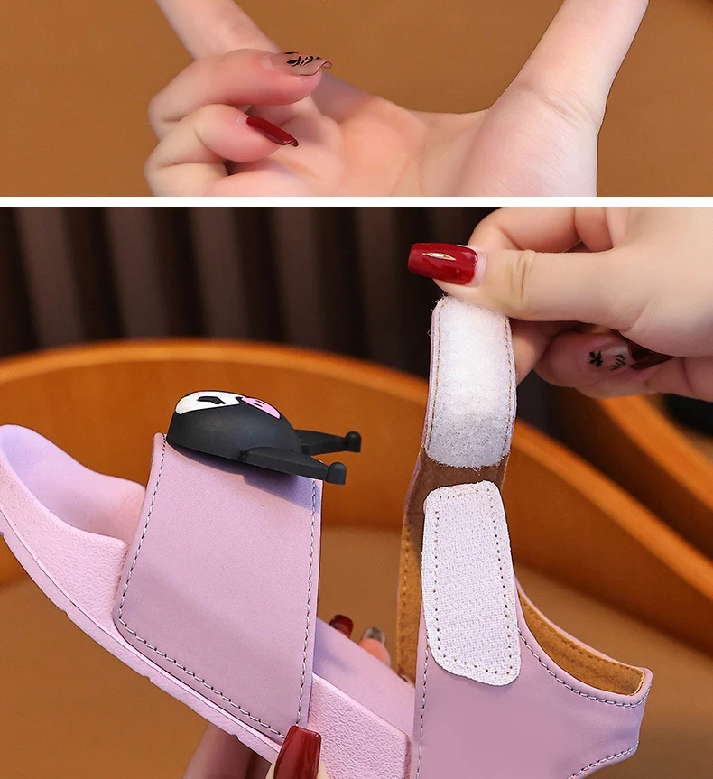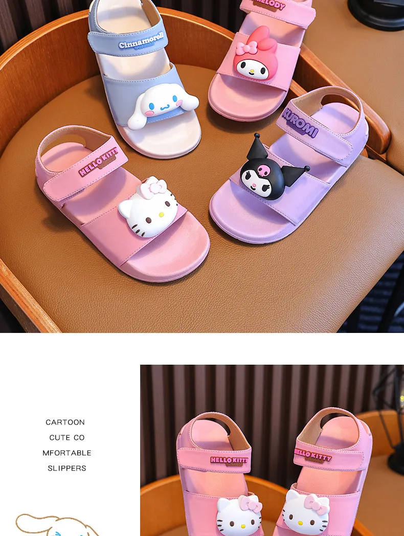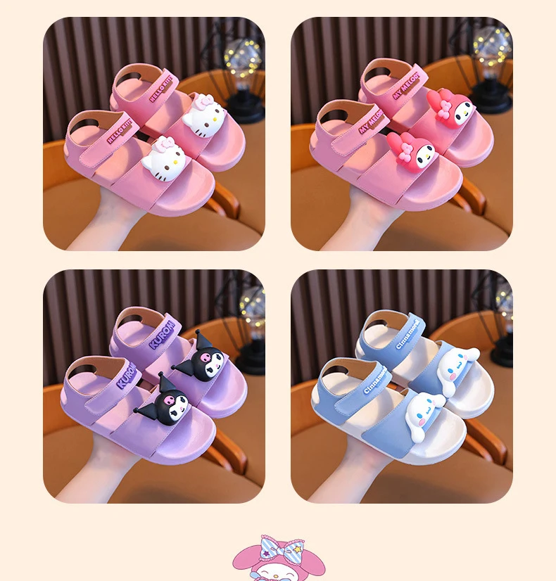 Sanrio KIds’ Sandals Lightweight Outdoor Anti-Slip Sandals For Boys Girls Beach Kuromi Wear-Resistant EVA Sole With Hook & Loop