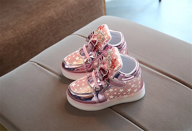 Size 21-30 Baby LED Shoes for Girls Anti-slippery Luminous Sneakers Breathable Glowing Casual Sneakers Girls Led Light Up Shoes