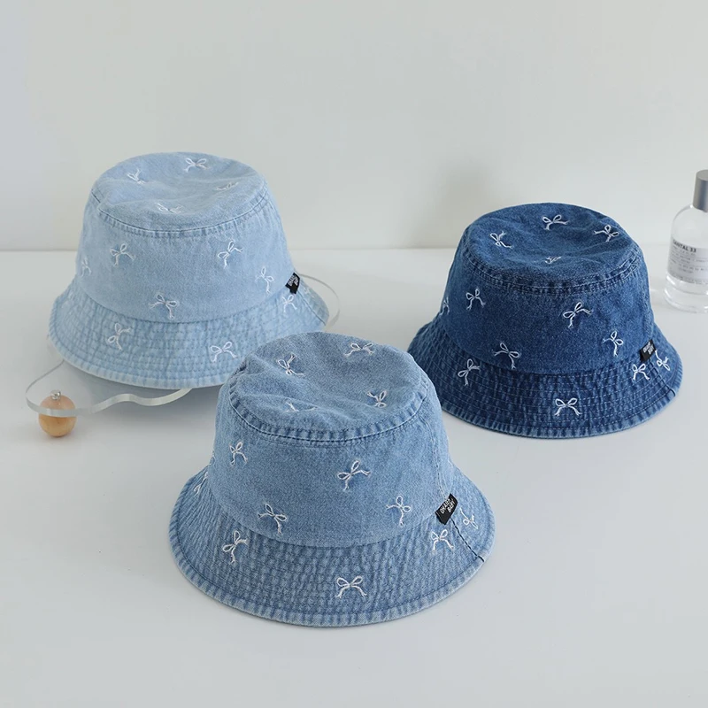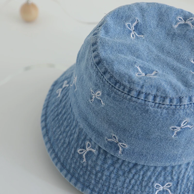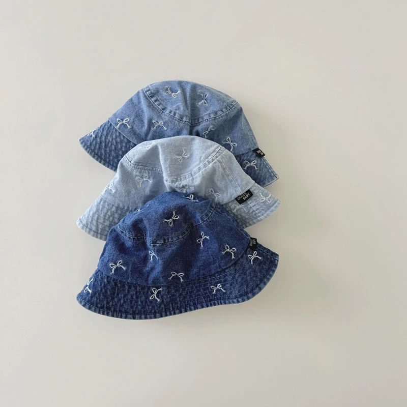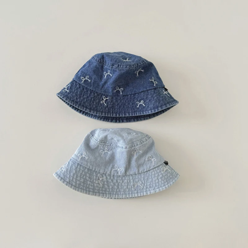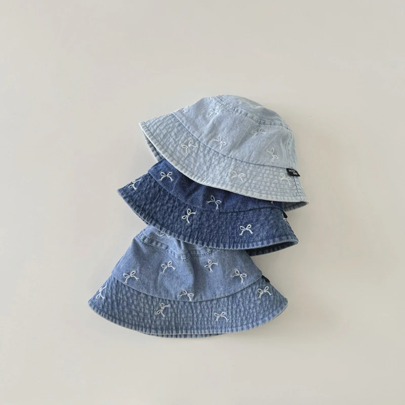 Spring Summer Baby Fisherman Hats Lovely Bow Pattern Kids Boys Girls Outdoor Sun Hat Fashion Denim Children Bucket Caps