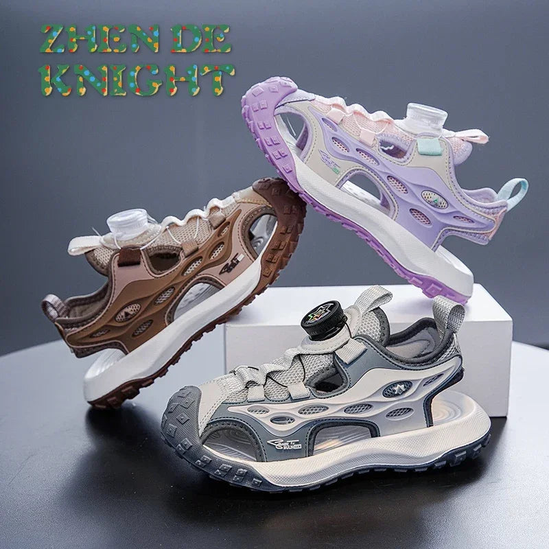 Summer 5-16 Years Boys Breathable Anti-Slip Beach Shoes Outdoor Anti-Bump Closed Toe Sandals Sport Sandals for Children's