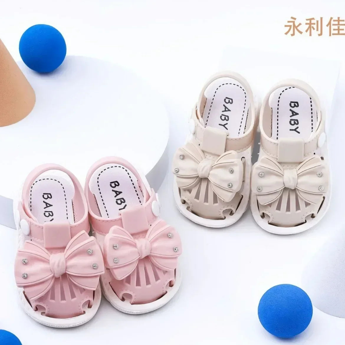 Summer Bow Baby Slippers For Children Cold Slippers Indoor Non-Slip Soft Bottom Comfort Cute Baby Hole Shoes Girls Home Slides