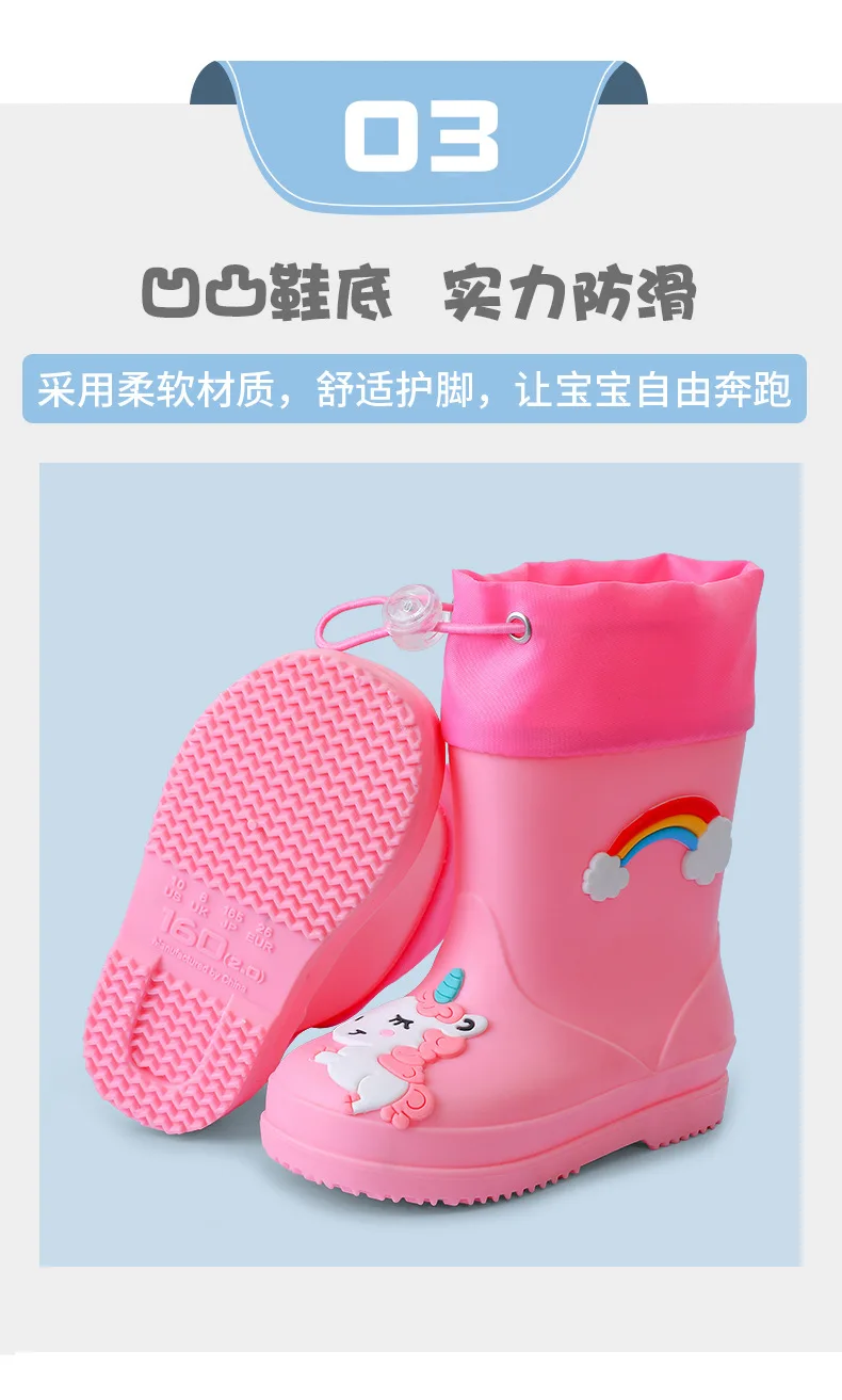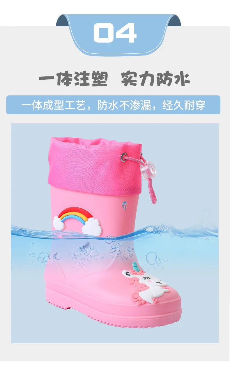 Summer children buckle rain shoes girls fashion beautiful water shoes thick soles non-slip rain boots