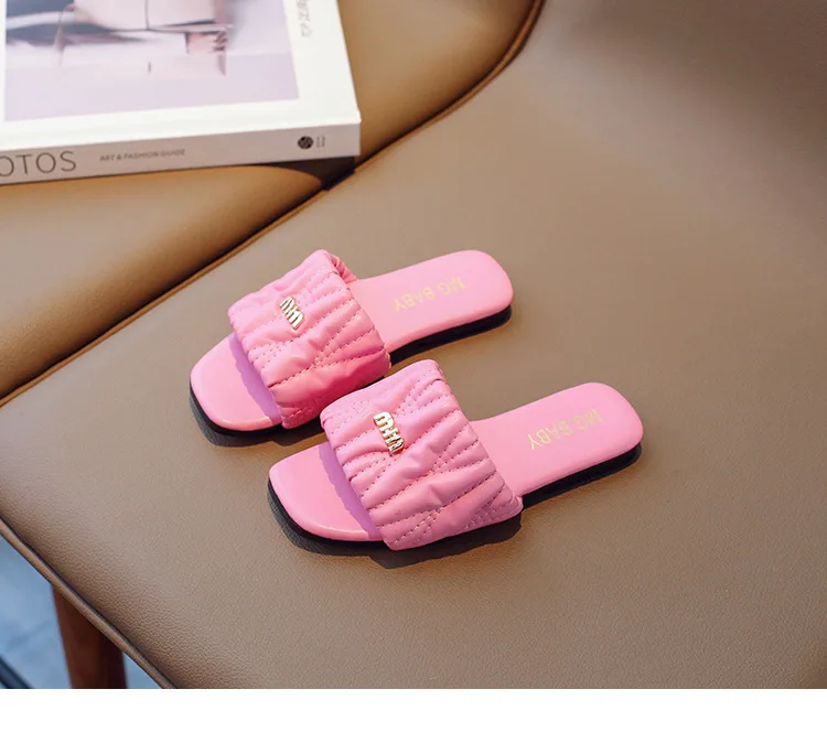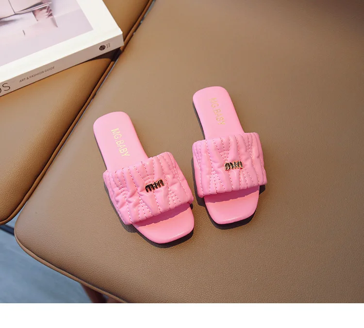 Summer Children's Shoes 2024 Children's flip-flops Women's Treasure candy-colored Princess flip-flops Girls' square toe slippers