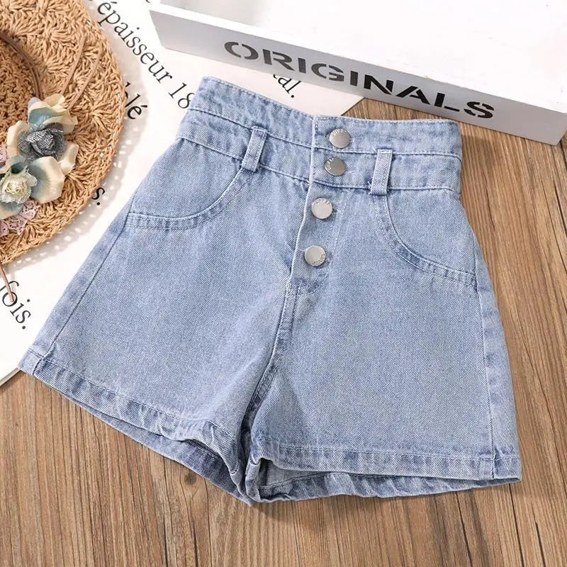 Summer Kids Girls Clothes Set Teen Girl Crop Tops T-shirt + Denim shorts 2pcs Girl Outfits Baby Girls Clothing 4 7 10 to 12 year