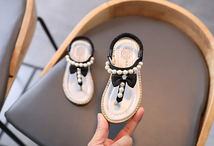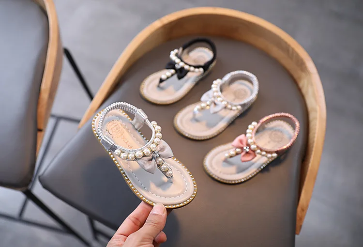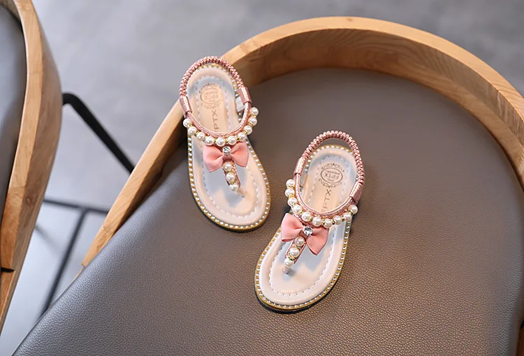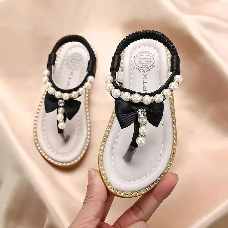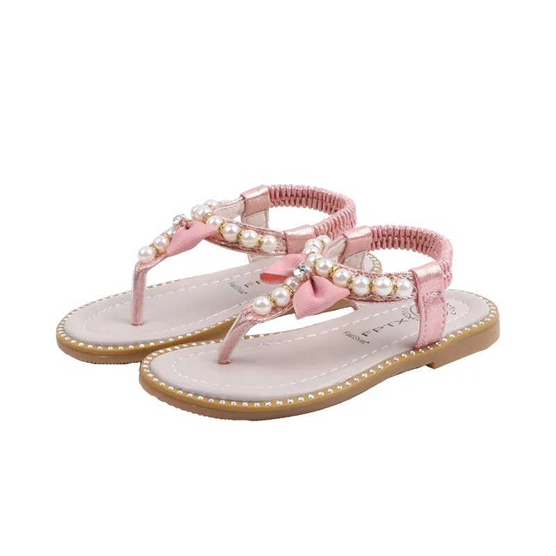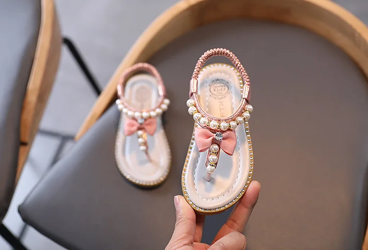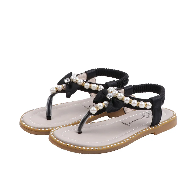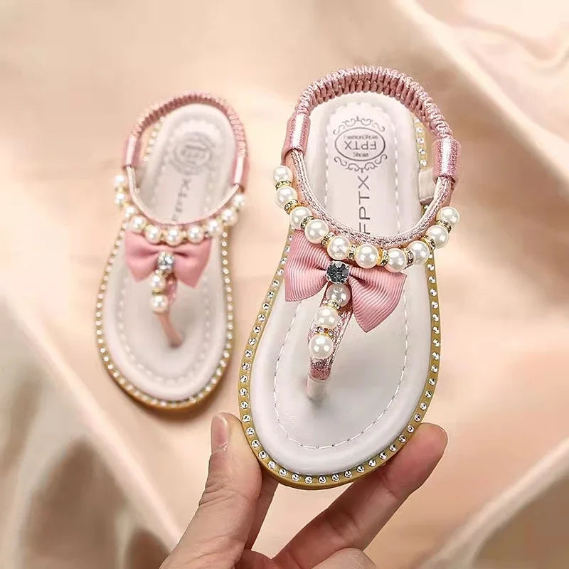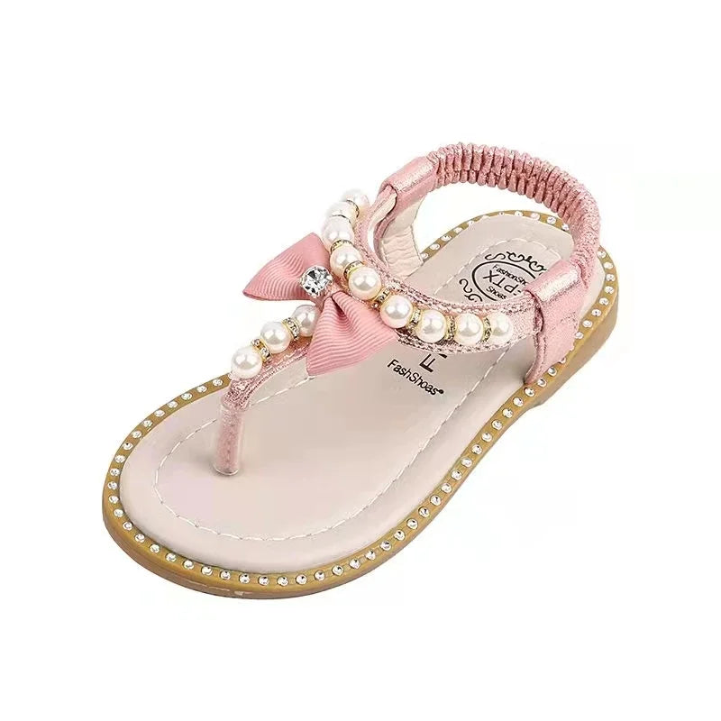 Sweet and Cute Bohemia Girls Sandals with Bow-tie 2024 Summer Children Roman Sandals Beading Flip Flops Beach Shoes Girl F02242