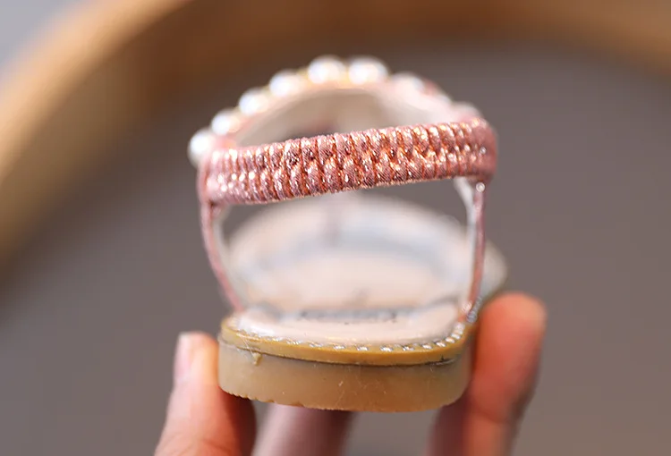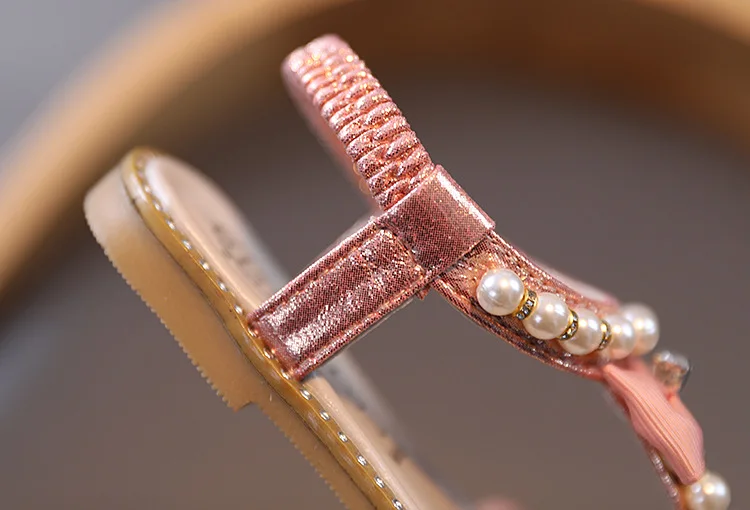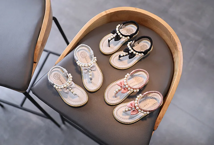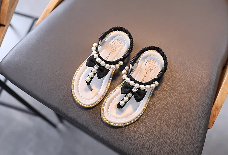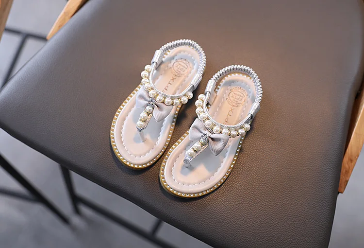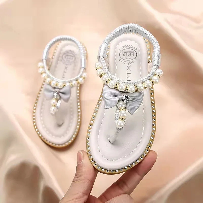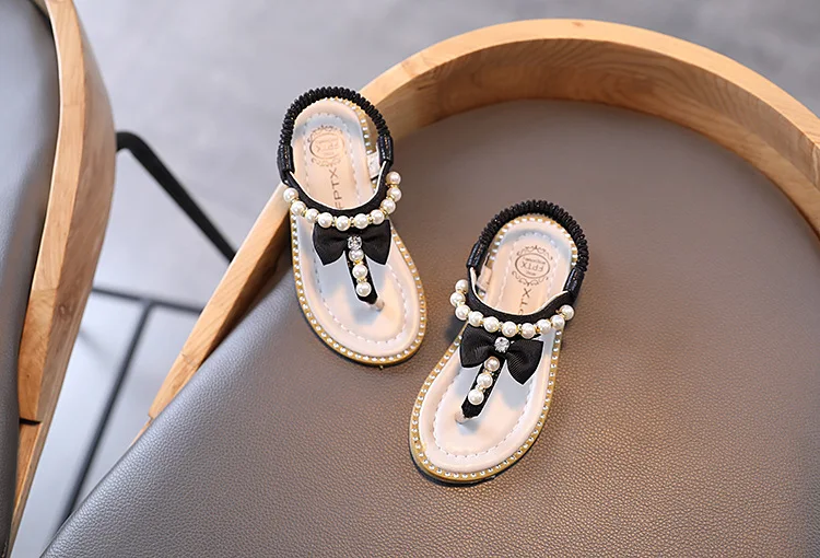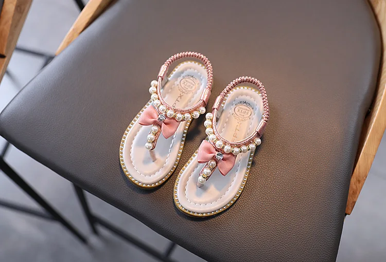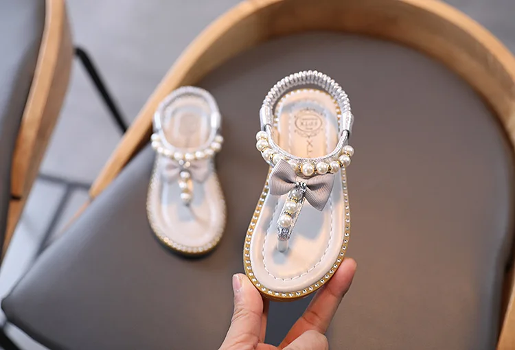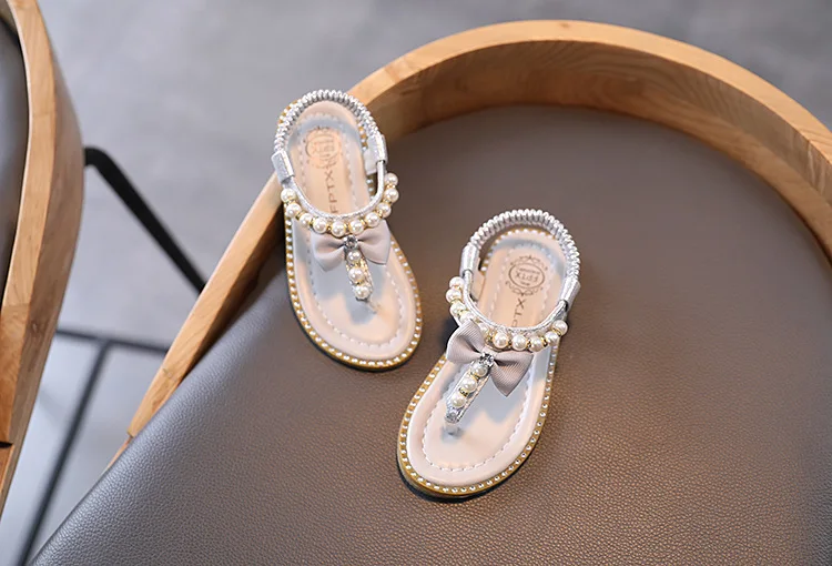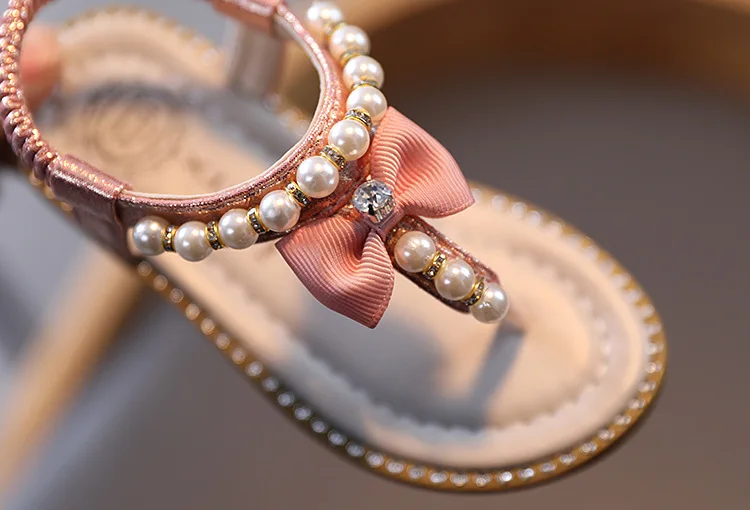 Sweet and Cute Bohemia Girls Sandals with Bow-tie 2024 Summer Children Roman Sandals Beading Flip Flops Beach Shoes Girl F02242
