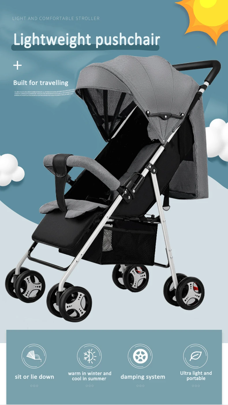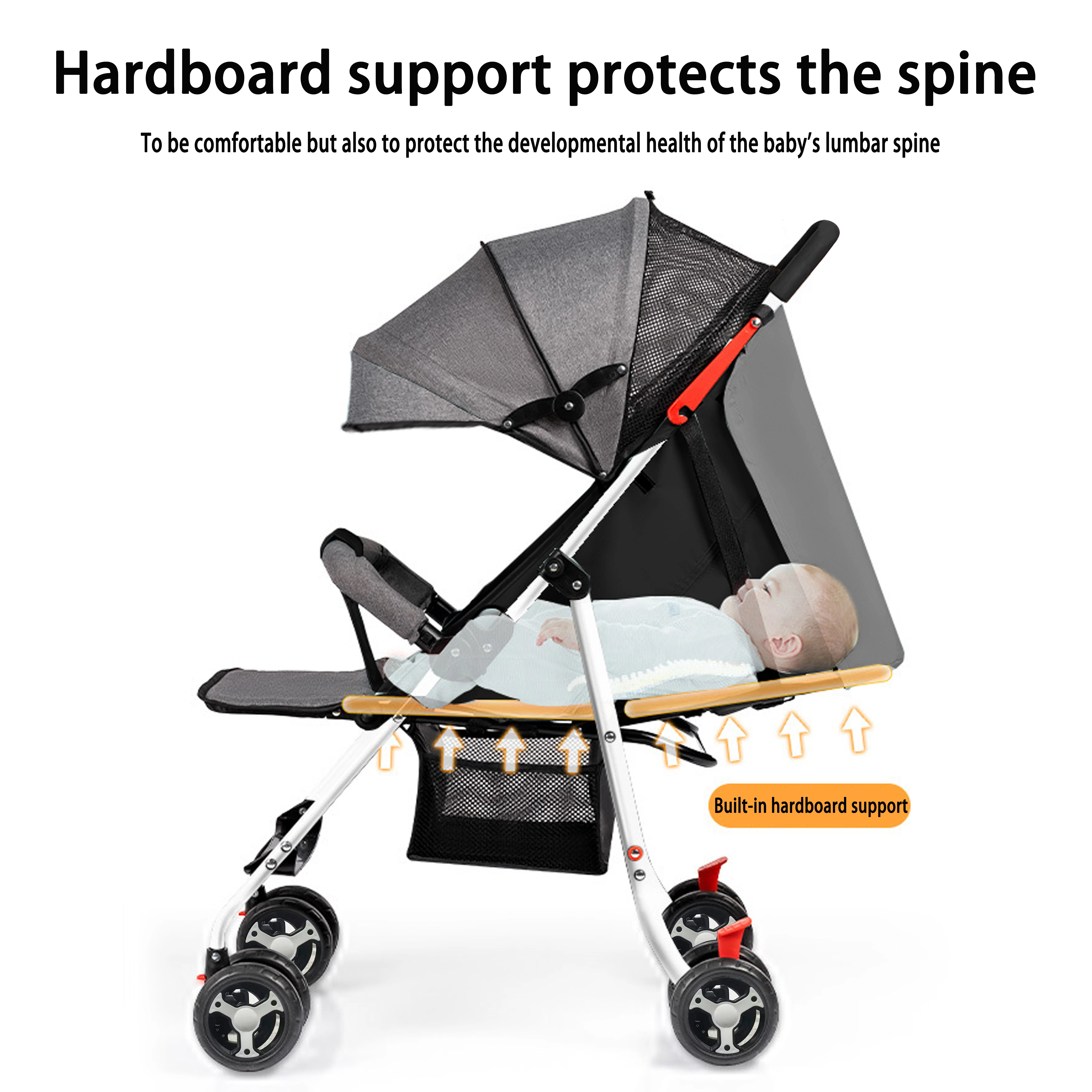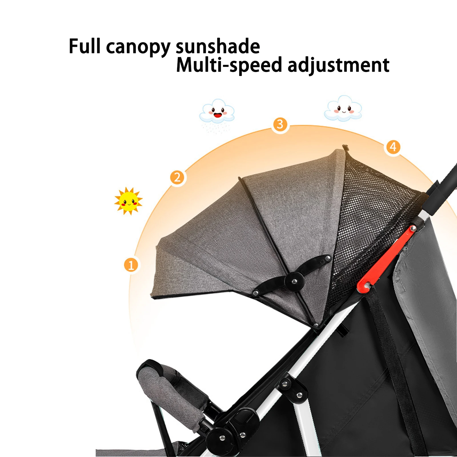 Travel Baby Stroller 4.3kg Ultra Light 68×48×90cm Compact Design Fits Car Boot and Airplane Cabin Easy Folding Pram Buggy Grey