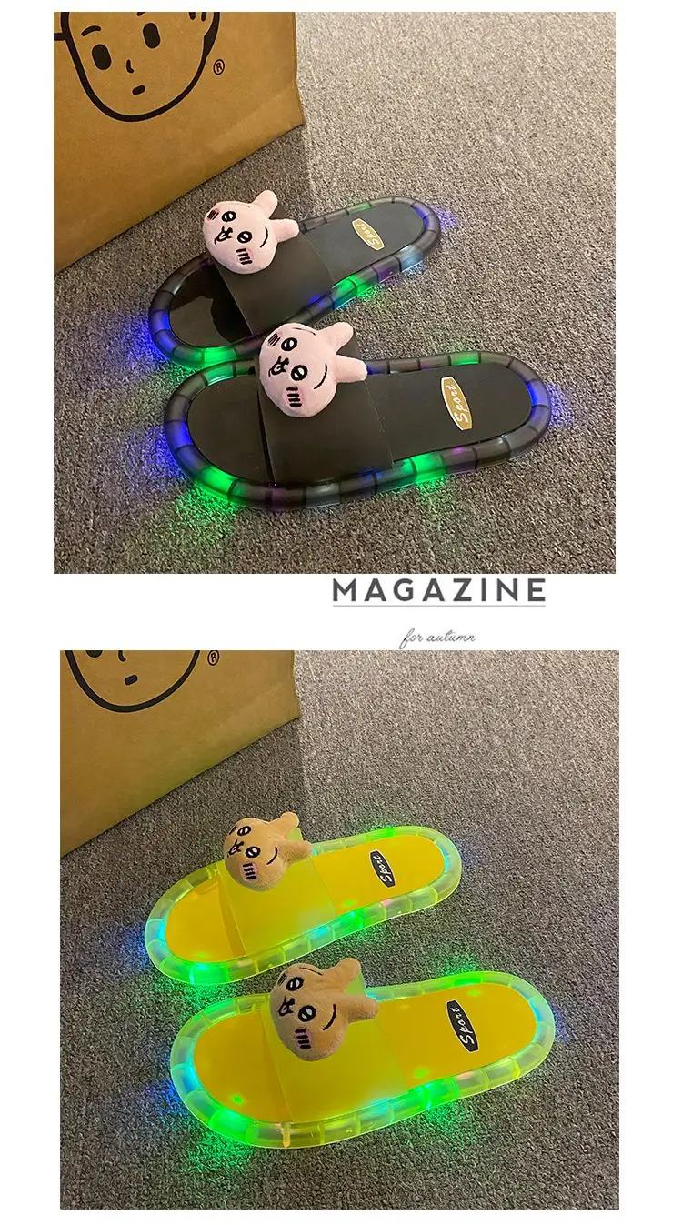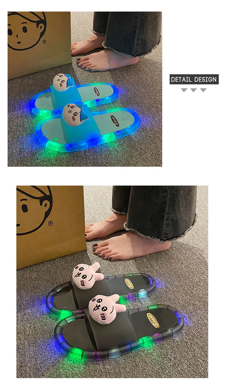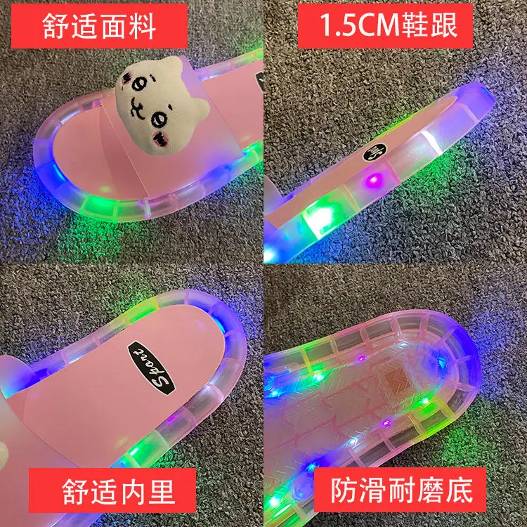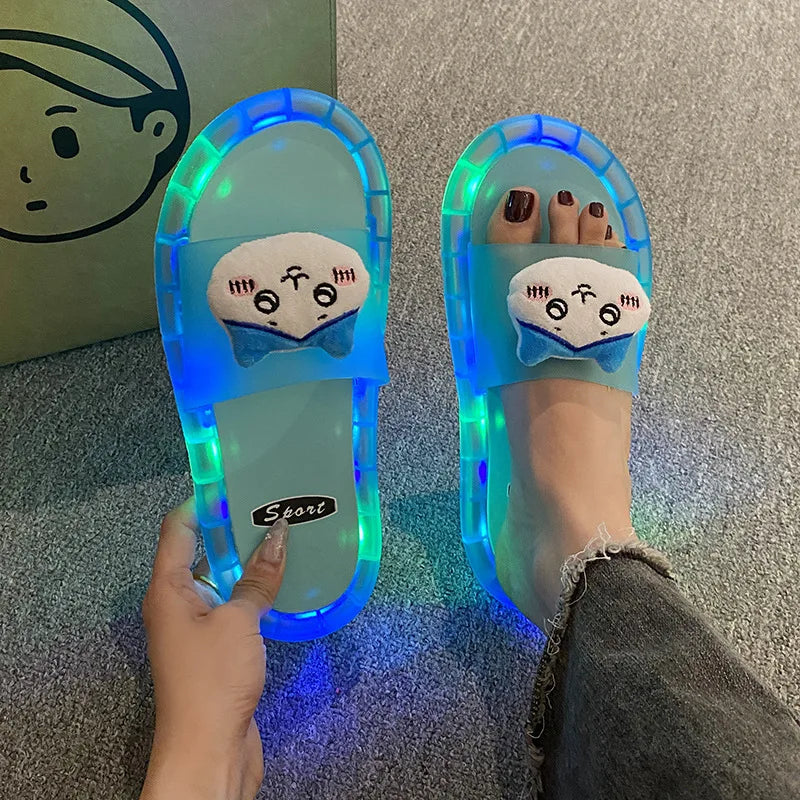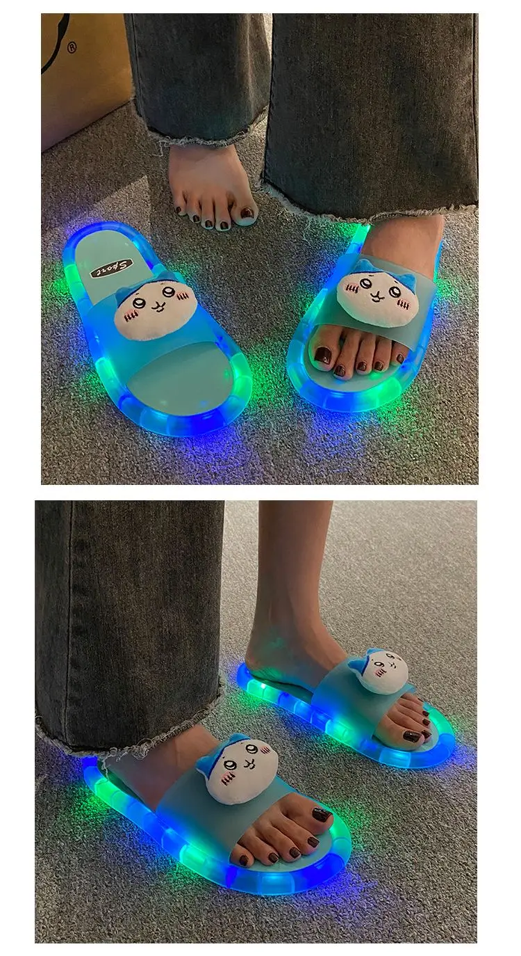 Y2K Kawaii Anime Chiikawa Toy Slippers Usagi Hachiwars Slippers Glow Wearing Outside Home Anti-Slip Flip-Flops Shoes Woman Gift