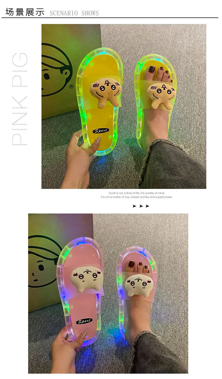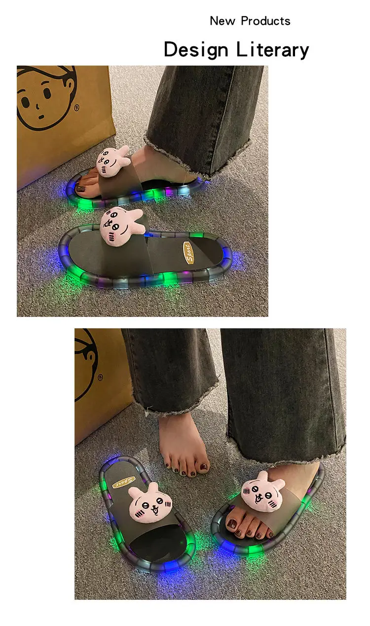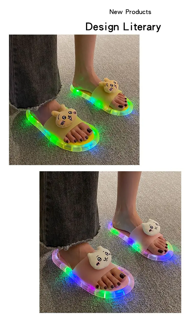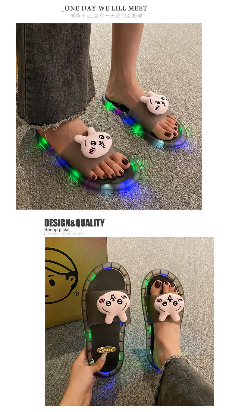 Y2K Kawaii Anime Chiikawa Toy Slippers Usagi Hachiwars Slippers Glow Wearing Outside Home Anti-Slip Flip-Flops Shoes Woman Gift