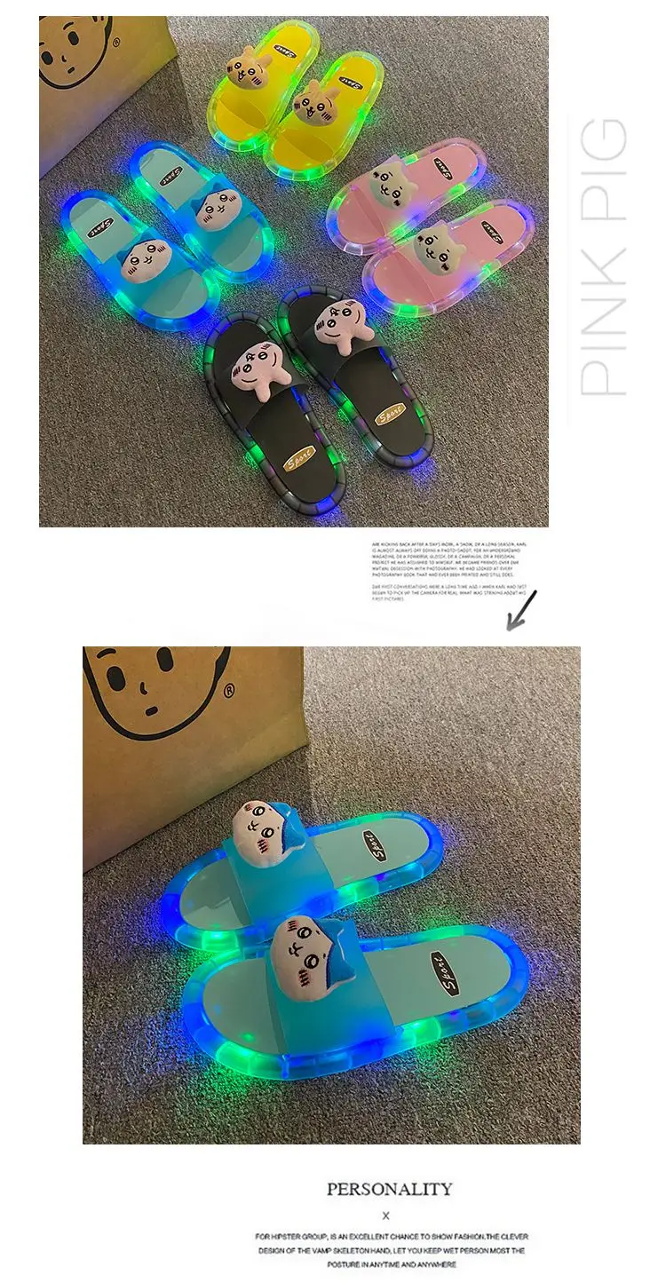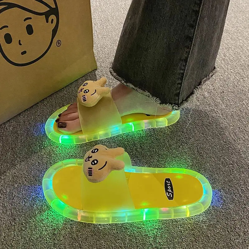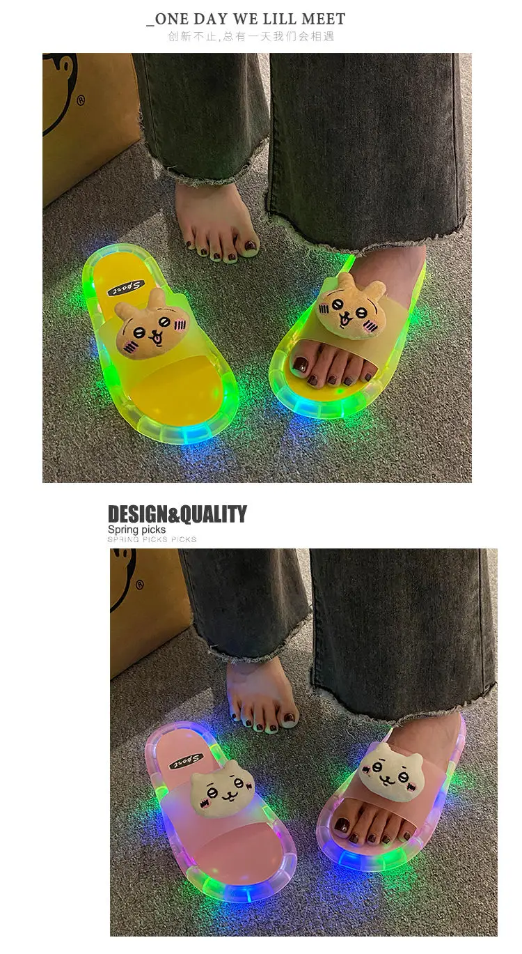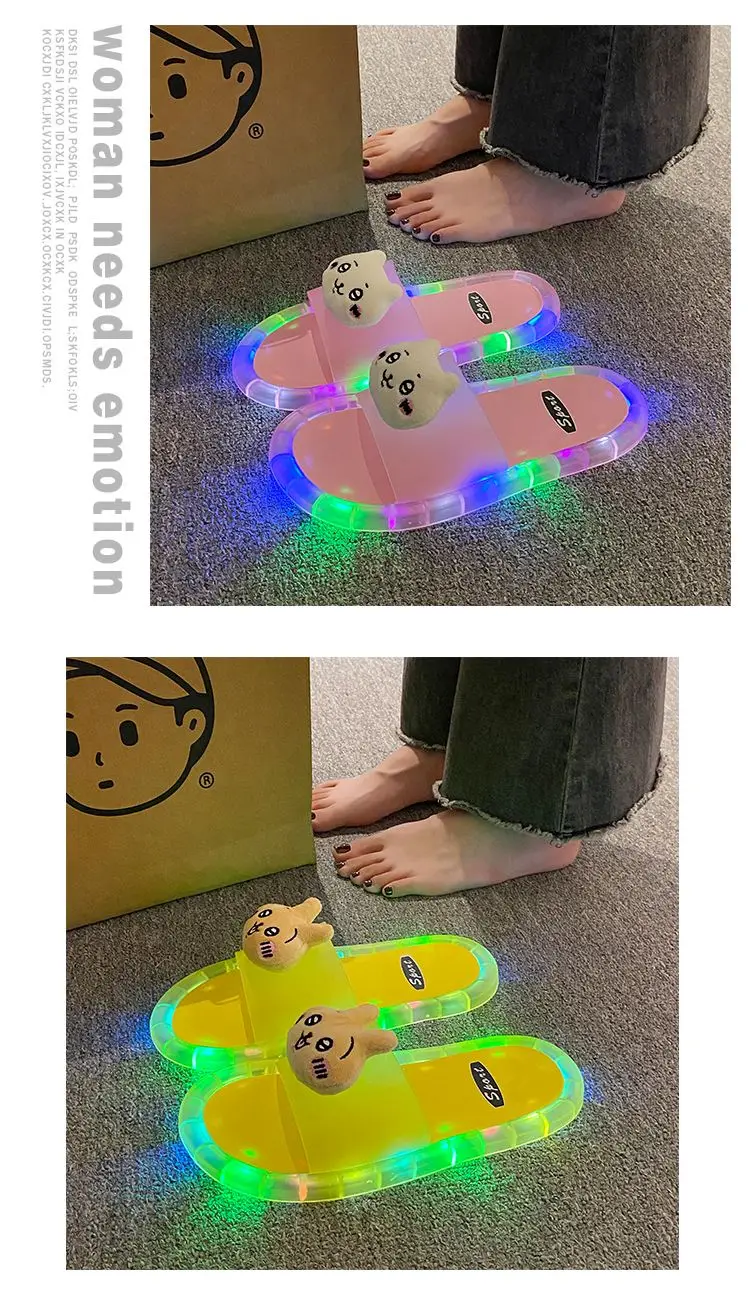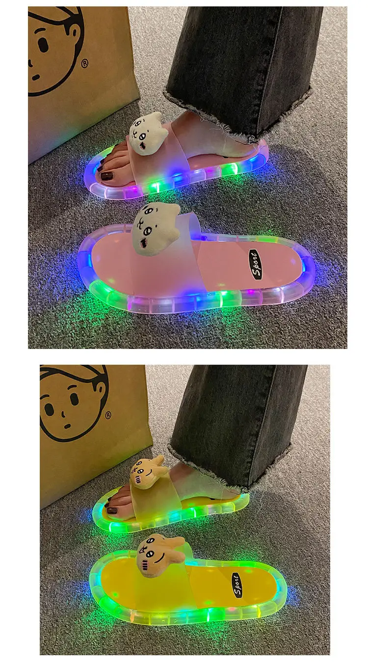 Y2K Kawaii Anime Chiikawa Toy Slippers Usagi Hachiwars Slippers Glow Wearing Outside Home Anti-Slip Flip-Flops Shoes Woman Gift